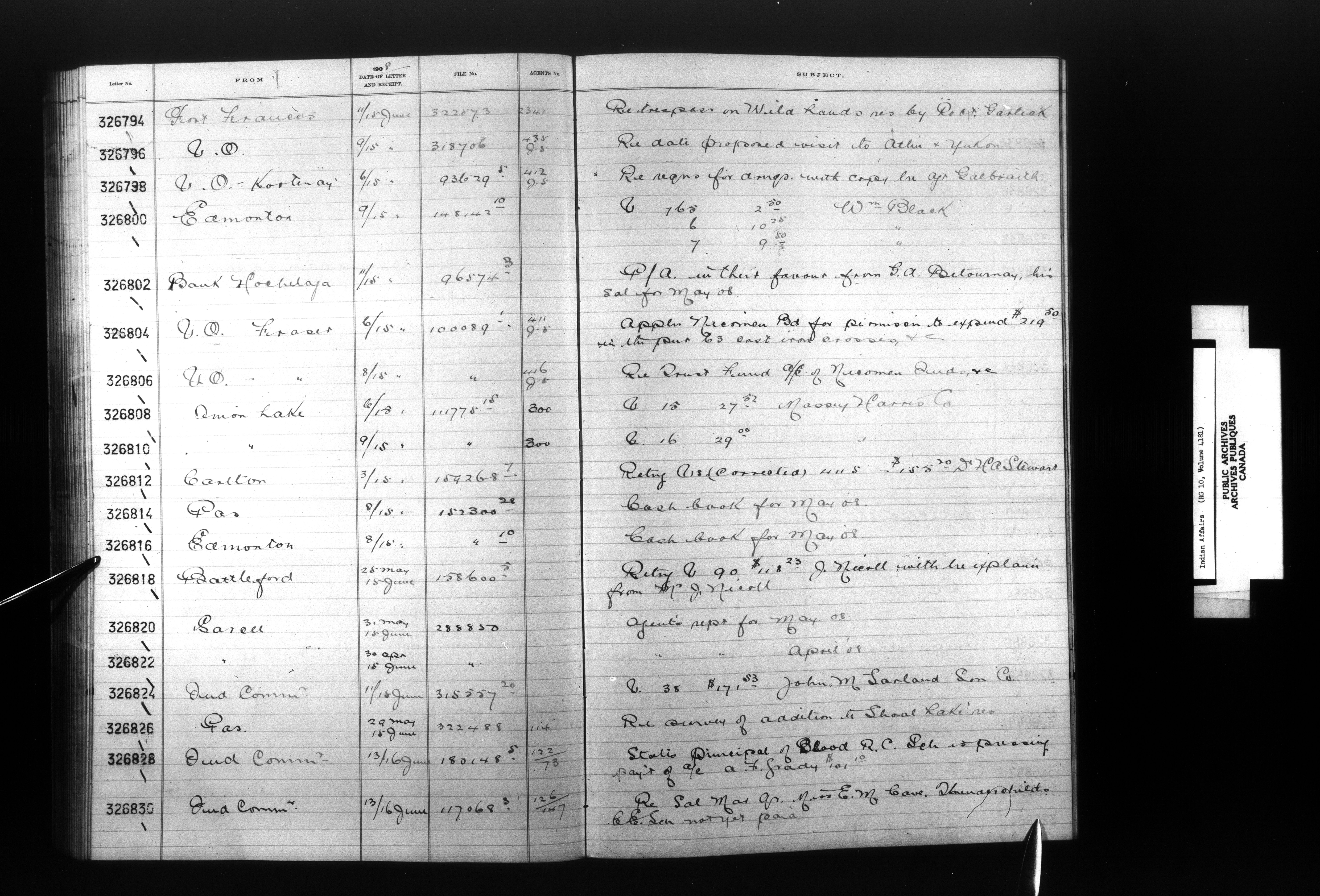 Department of Indian Affairs, Headquarters central registry system :registers, indices and indexed registers : C-9045