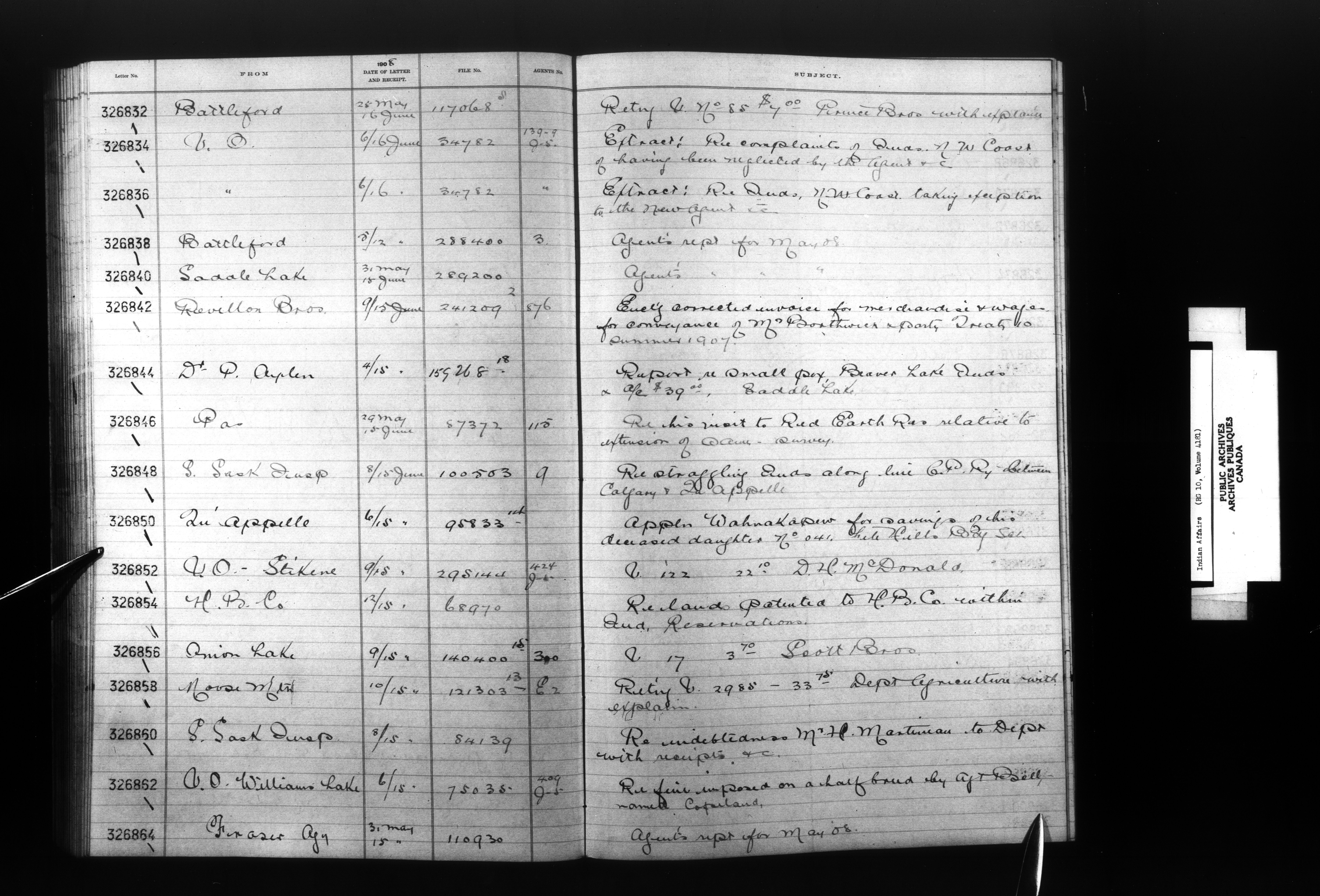 Department of Indian Affairs, Headquarters central registry system :registers, indices and indexed registers : C-9045