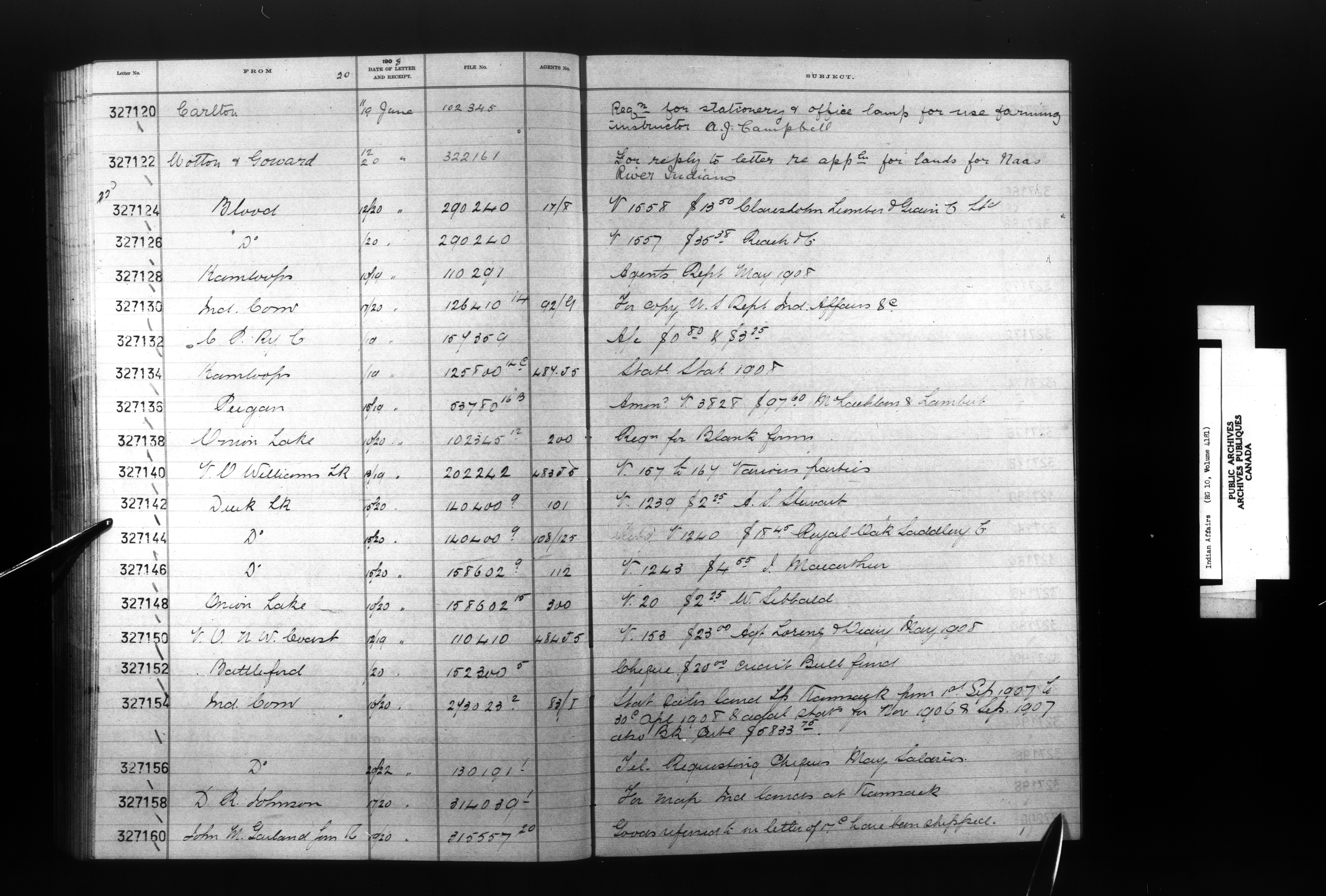 Department of Indian Affairs, Headquarters central registry system :registers, indices and indexed registers : C-9045