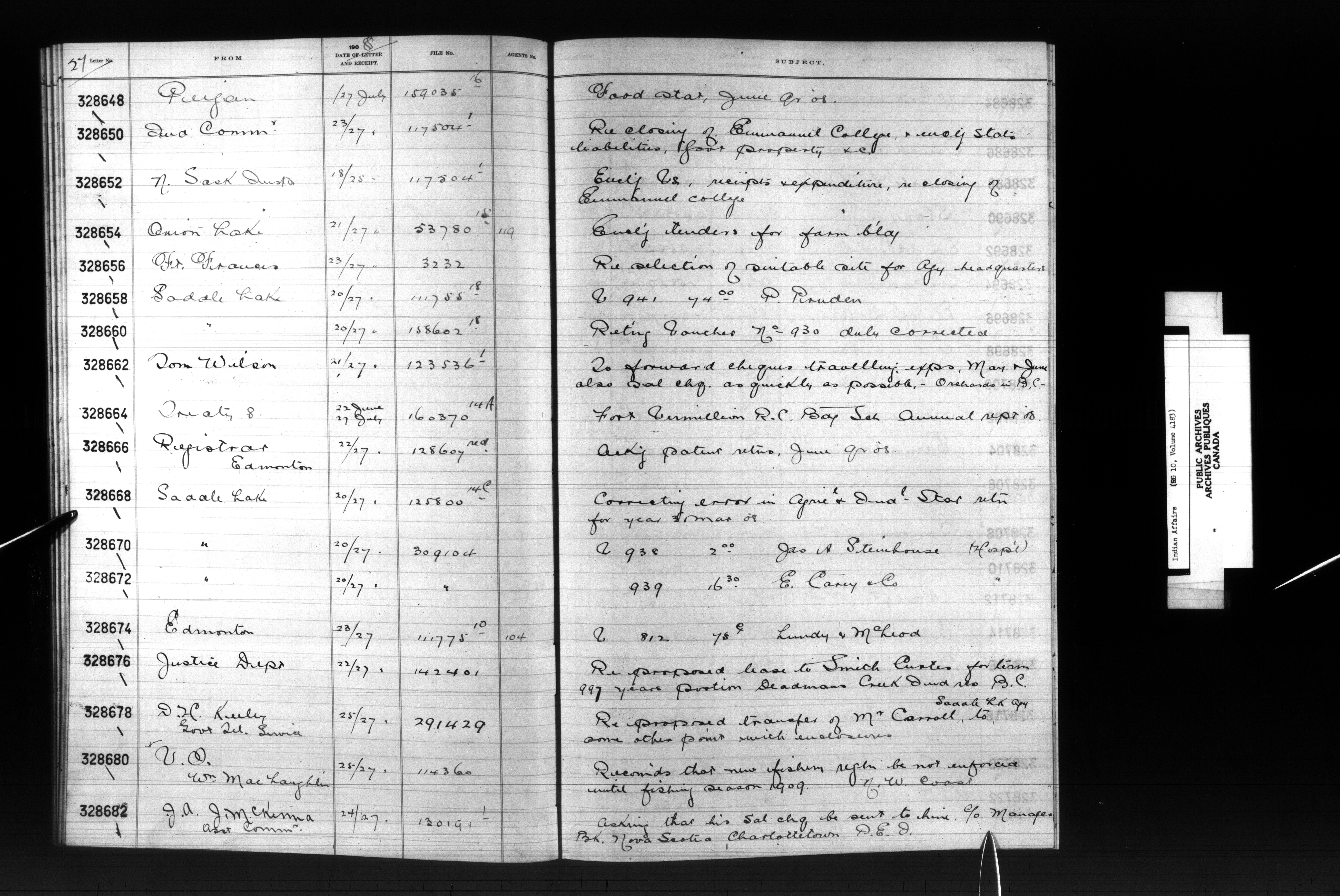 Department of Indian Affairs, Headquarters central registry system :registers, indices and indexed registers : C-9046