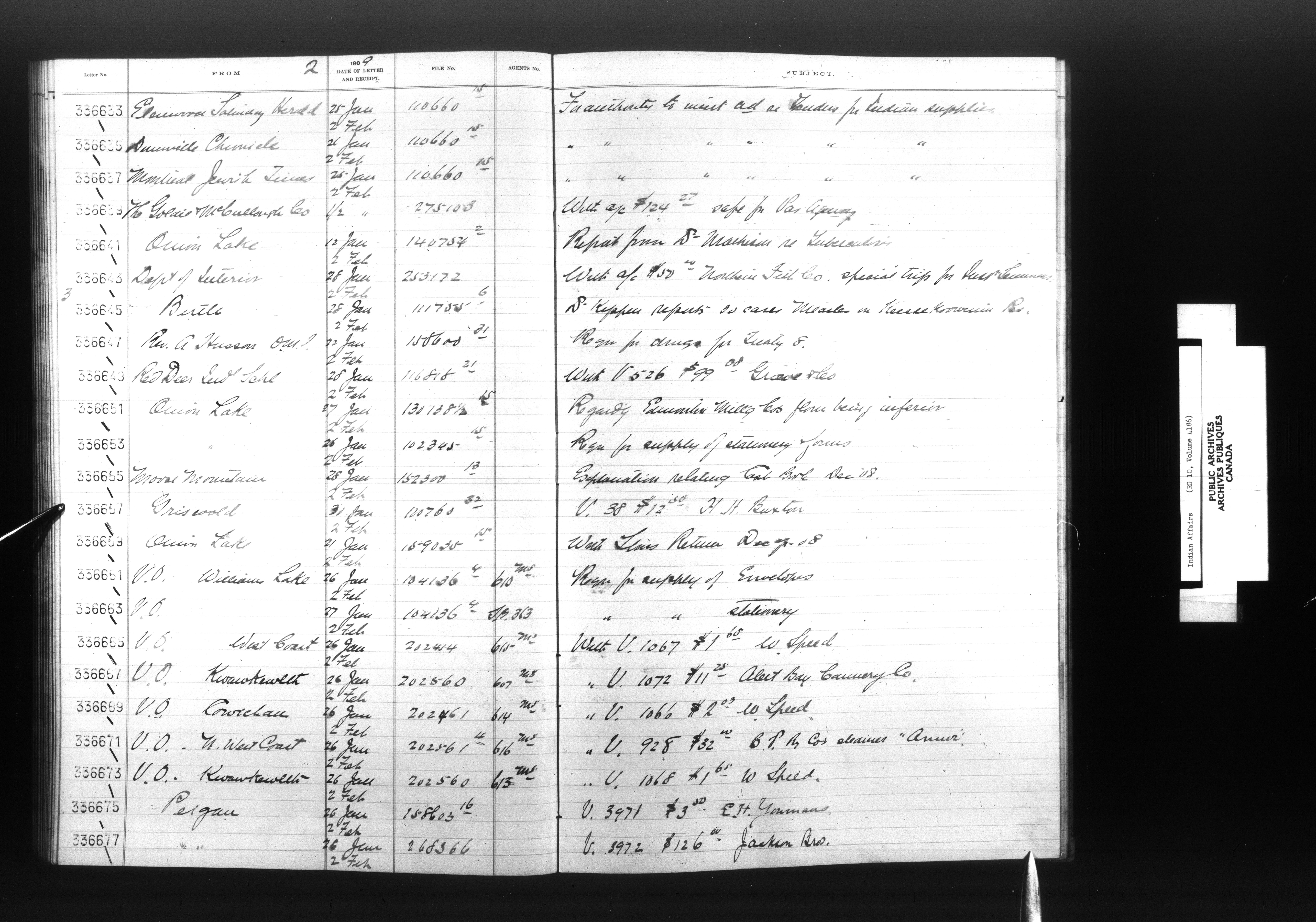 Department of Indian Affairs, Headquarters central registry system :registers, indices and indexed registers : C-9047