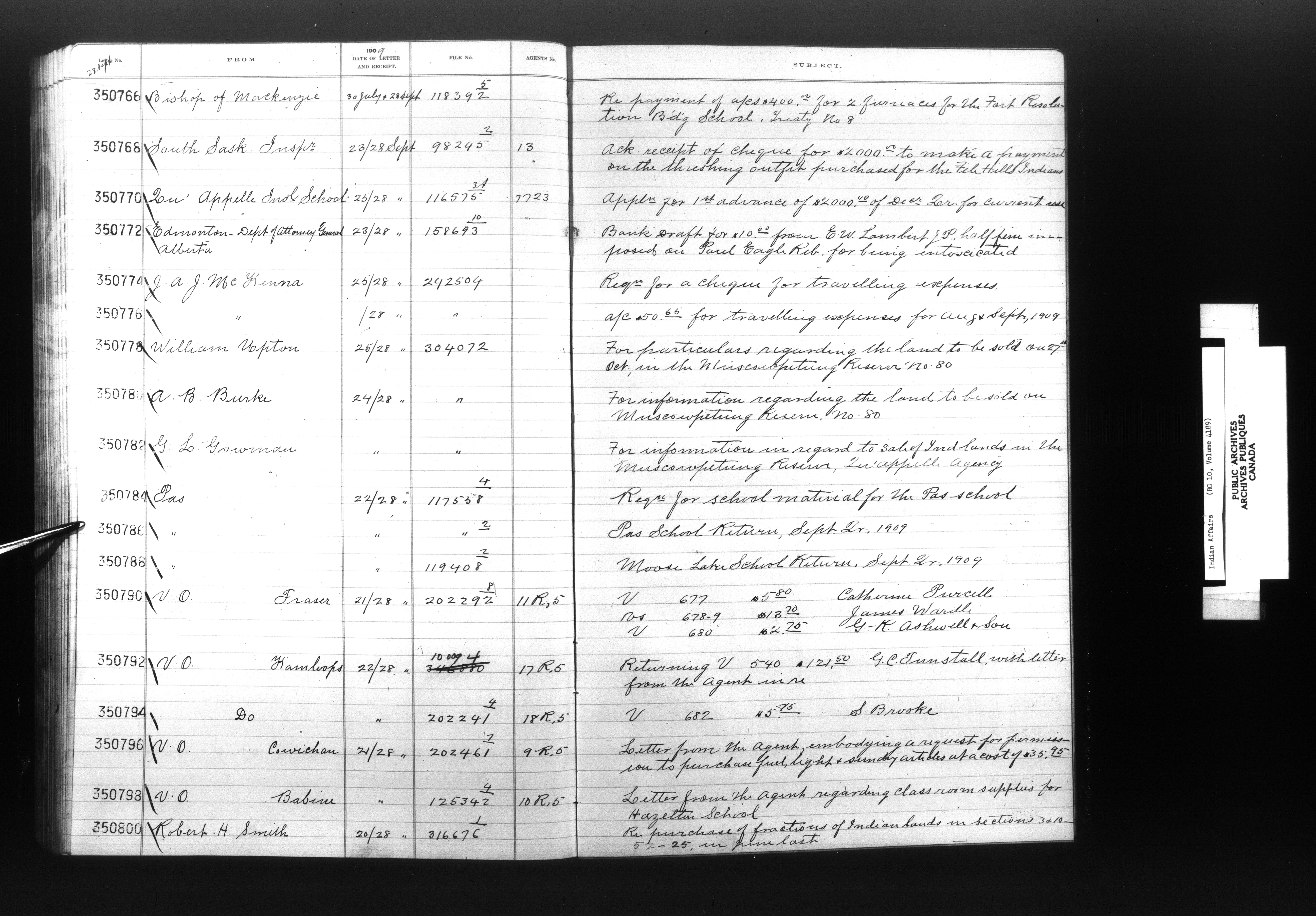 Department of Indian Affairs, Headquarters central registry system : registers, indices and indexed registers - 9047