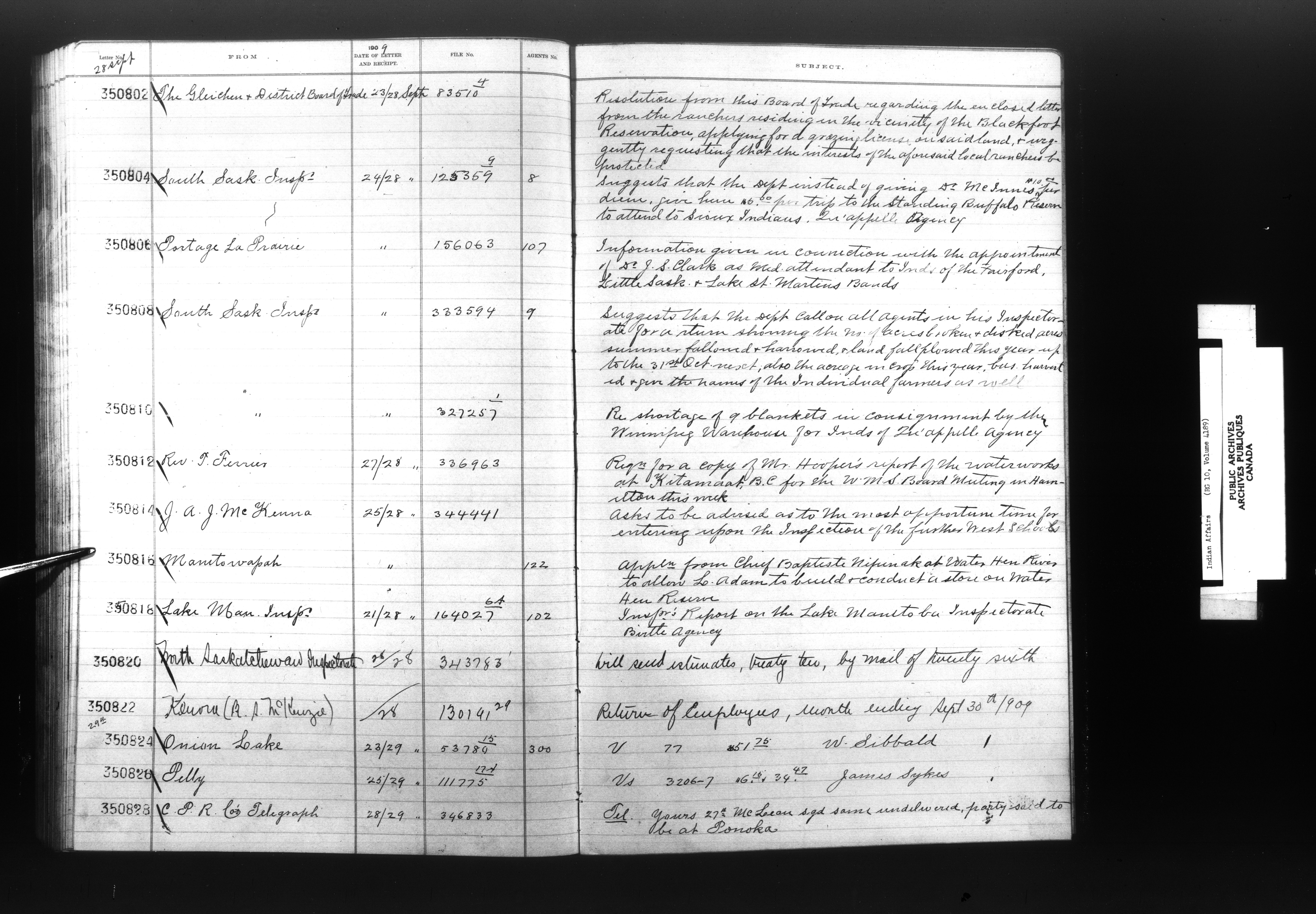 Department of Indian Affairs, Headquarters central registry system :registers, indices and indexed registers : C-9047