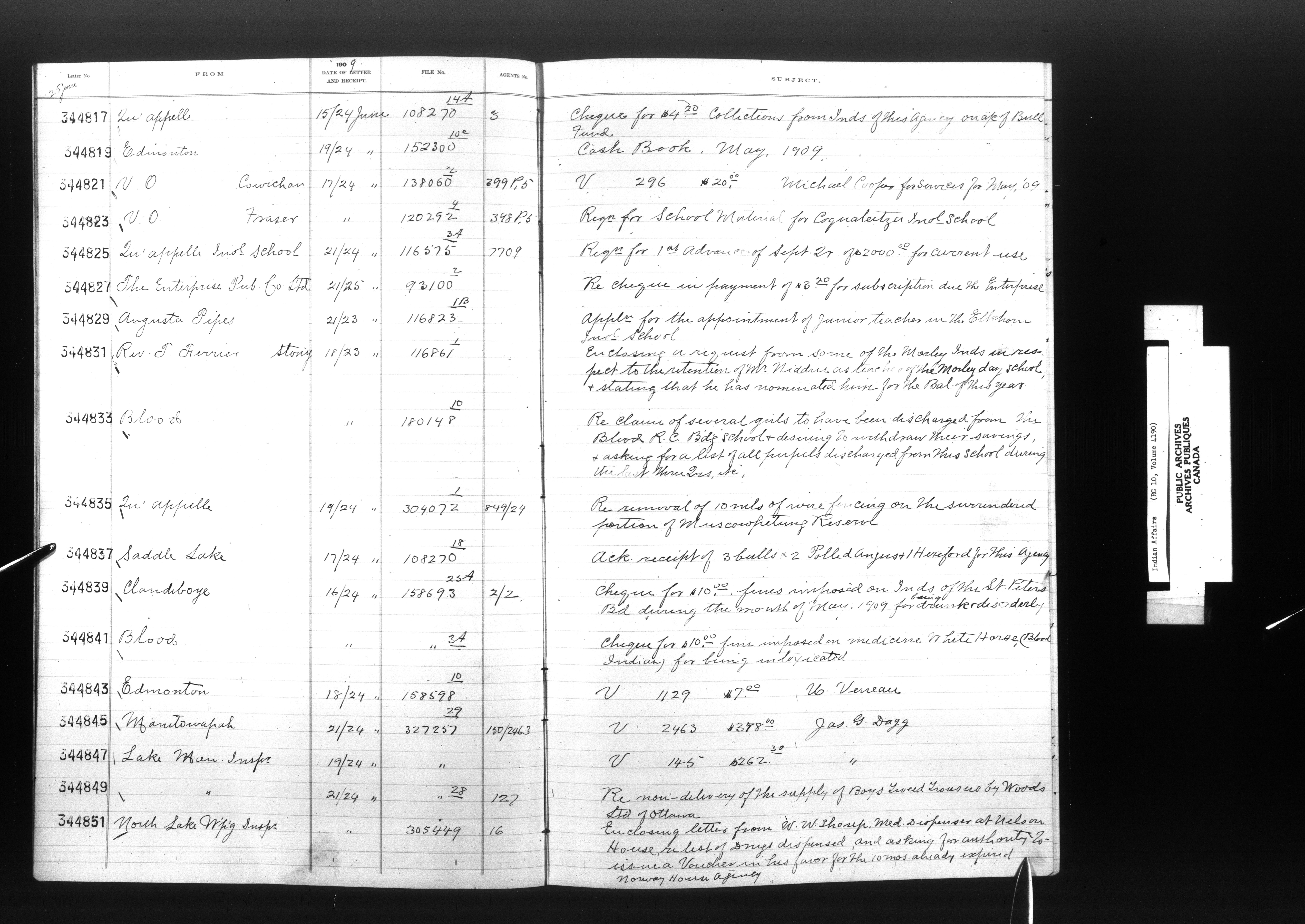 Department of Indian Affairs, Headquarters central registry system : registers, indices and indexed registers - 9047