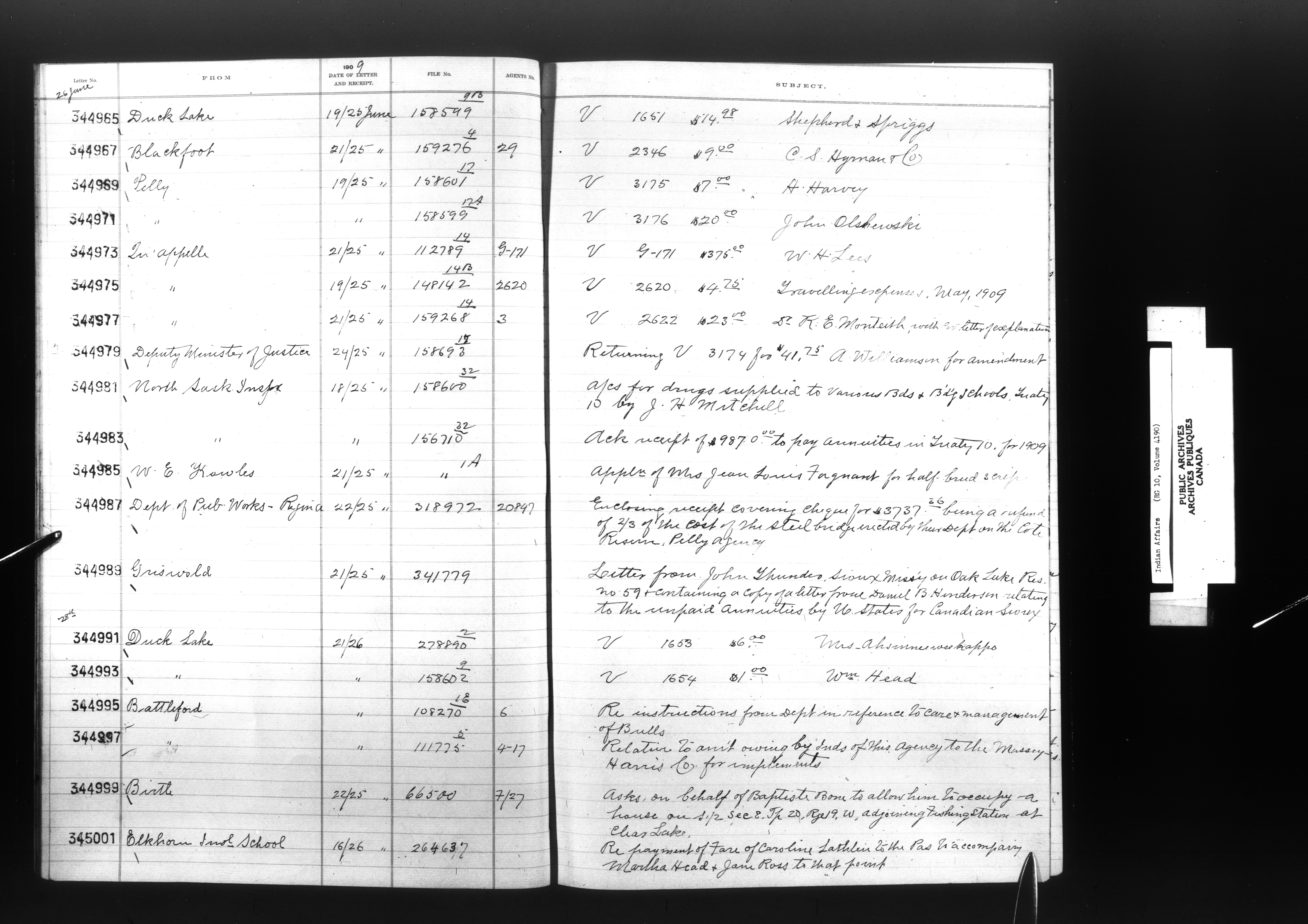 Department of Indian Affairs, Headquarters central registry system : registers, indices and indexed registers - 9047