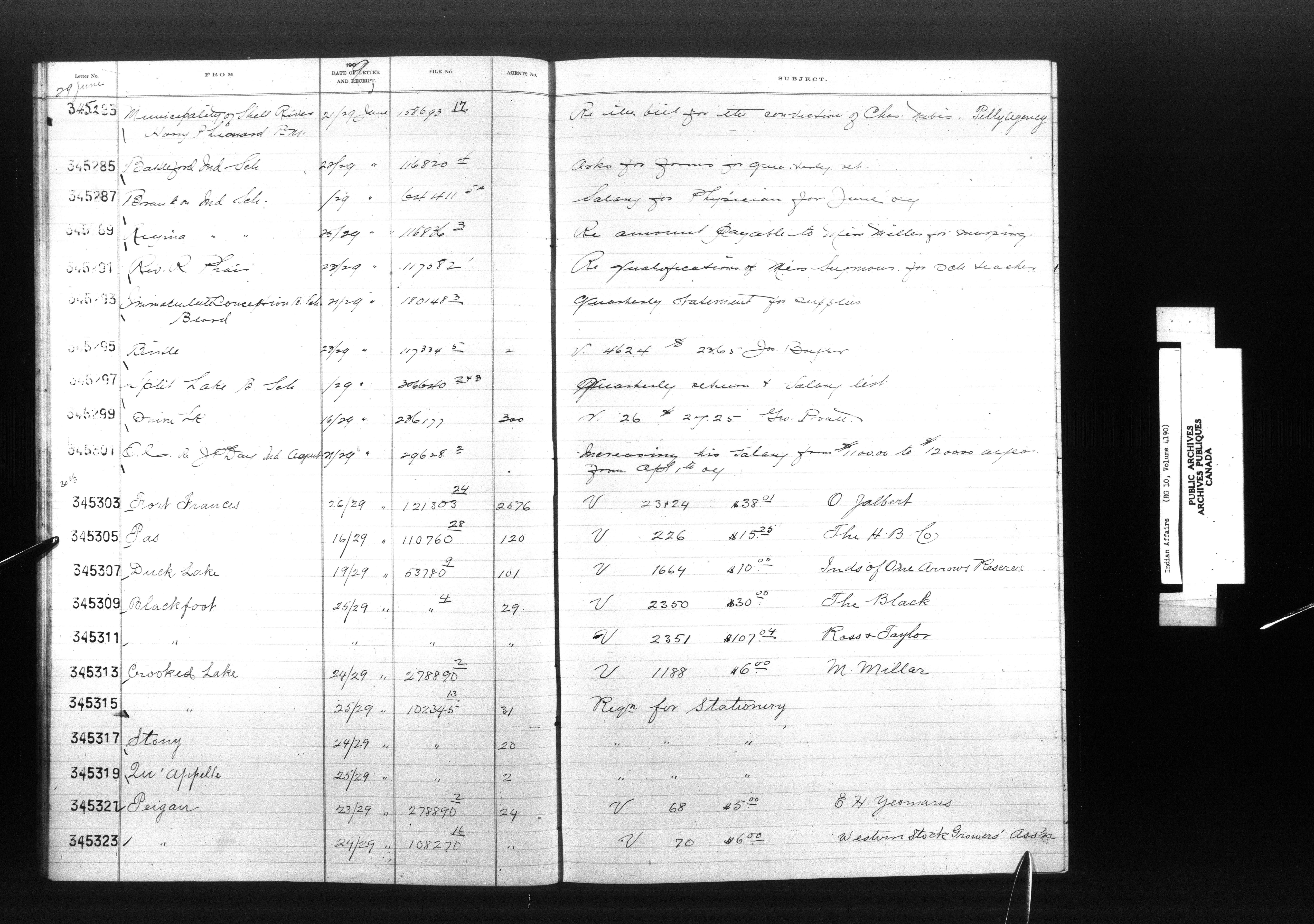 Department of Indian Affairs, Headquarters central registry system :registers, indices and indexed registers : C-9047
