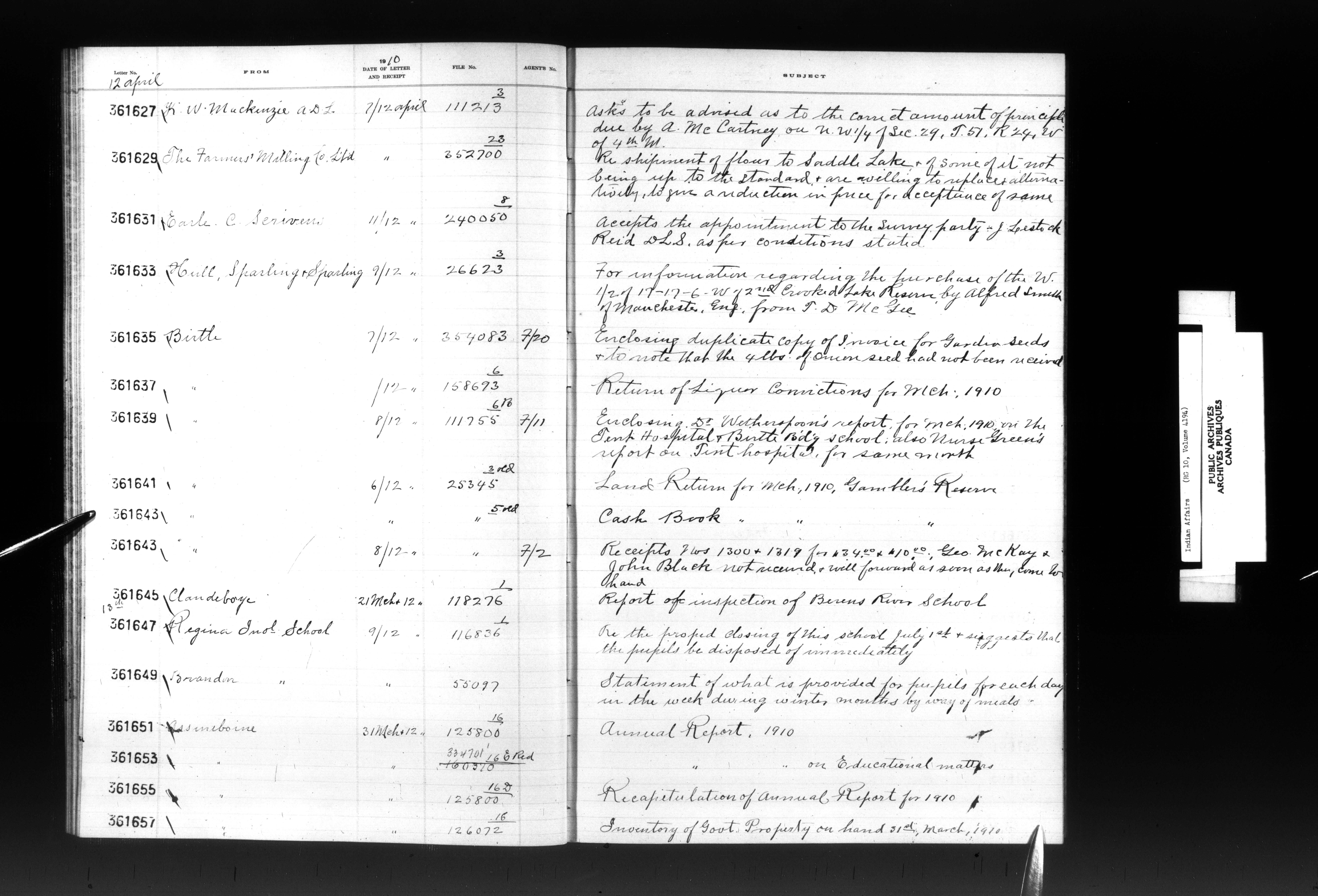 Department of Indian Affairs, Headquarters central registry system : registers, indices and indexed registers - 9048