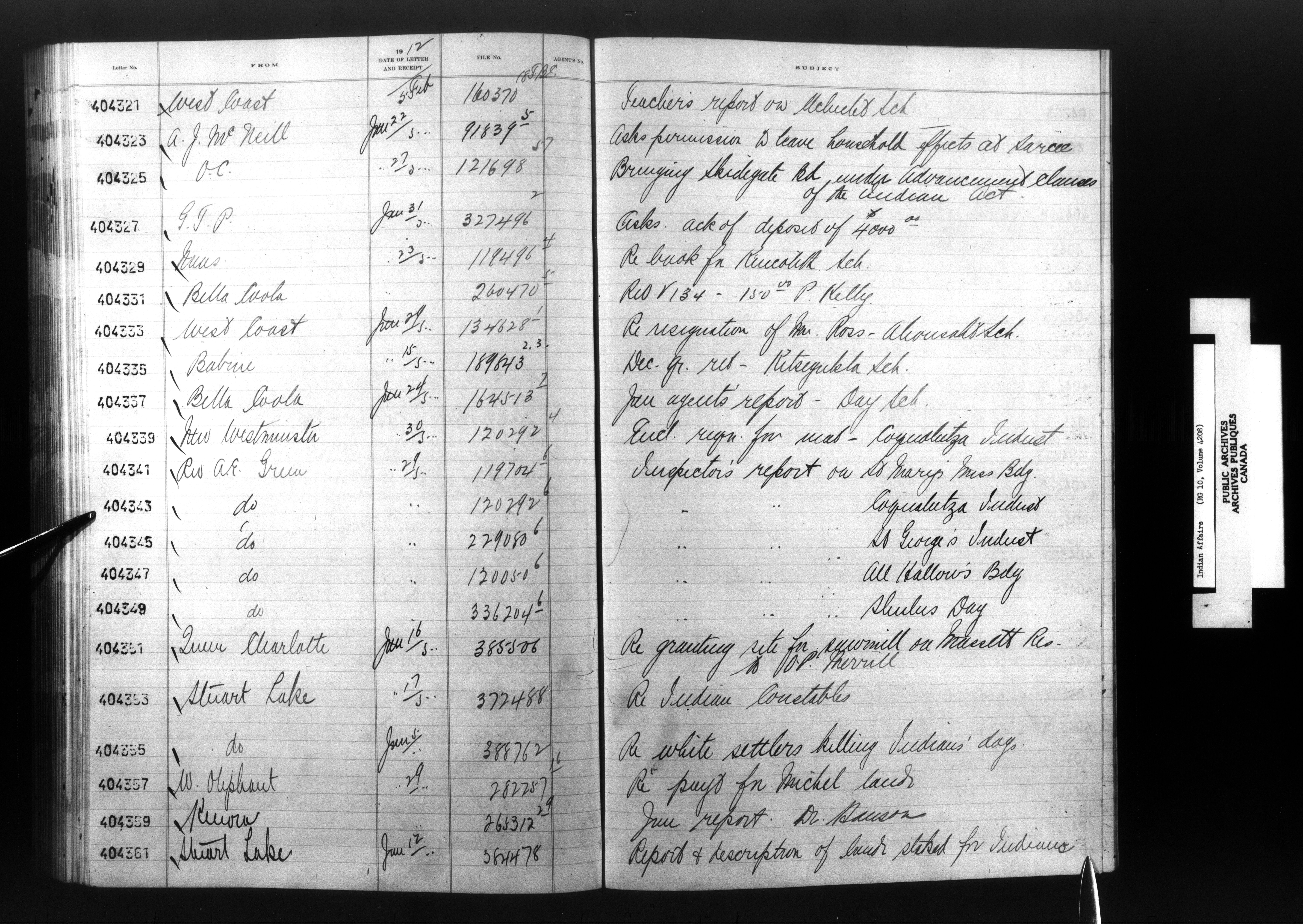 Department of Indian Affairs, Headquarters central registry system : registers, indices and indexed registers - 9052