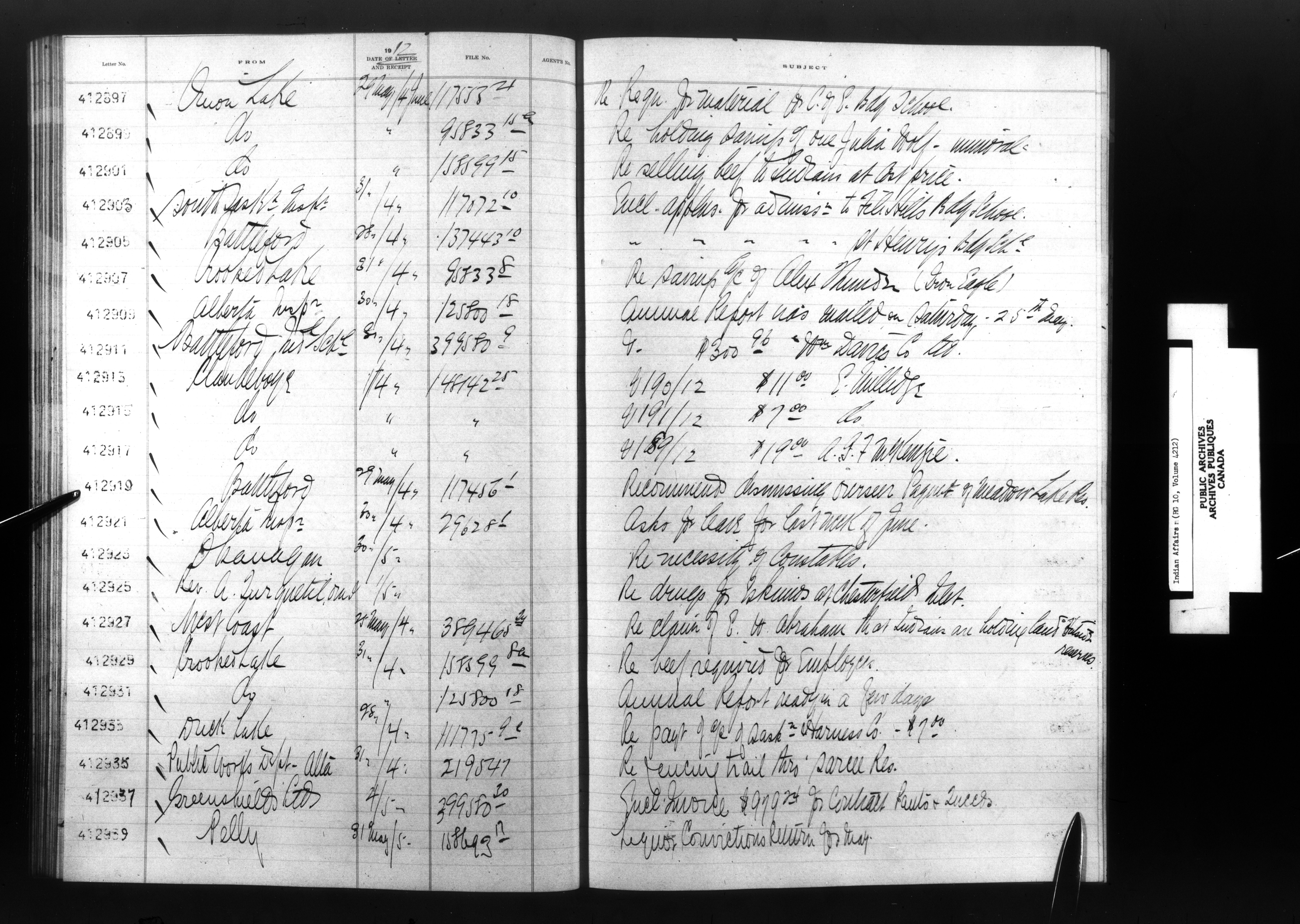 Department of Indian Affairs, Headquarters central registry system : registers, indices and indexed registers - 9052