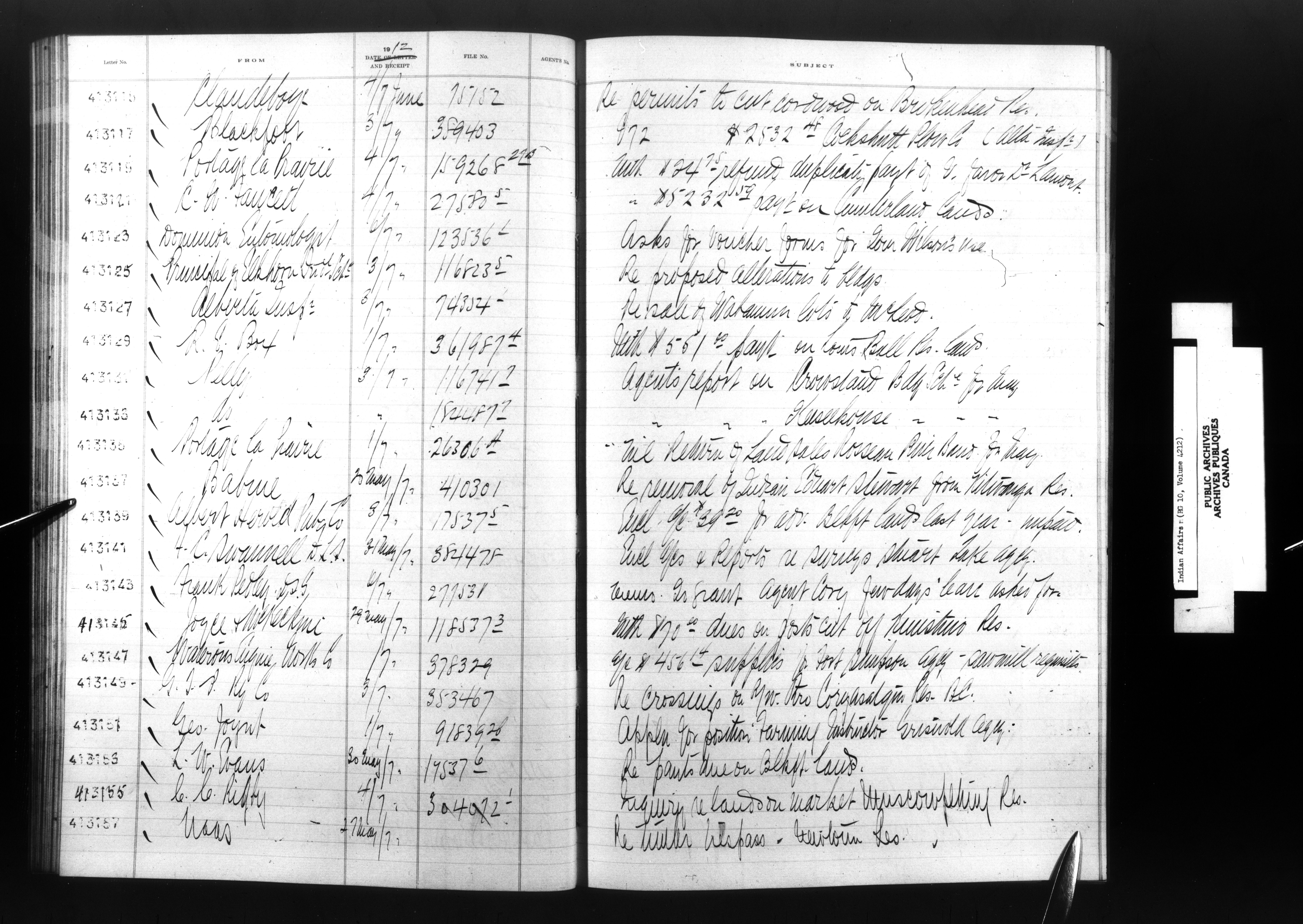 Department of Indian Affairs, Headquarters central registry system : registers, indices and indexed registers - 9052