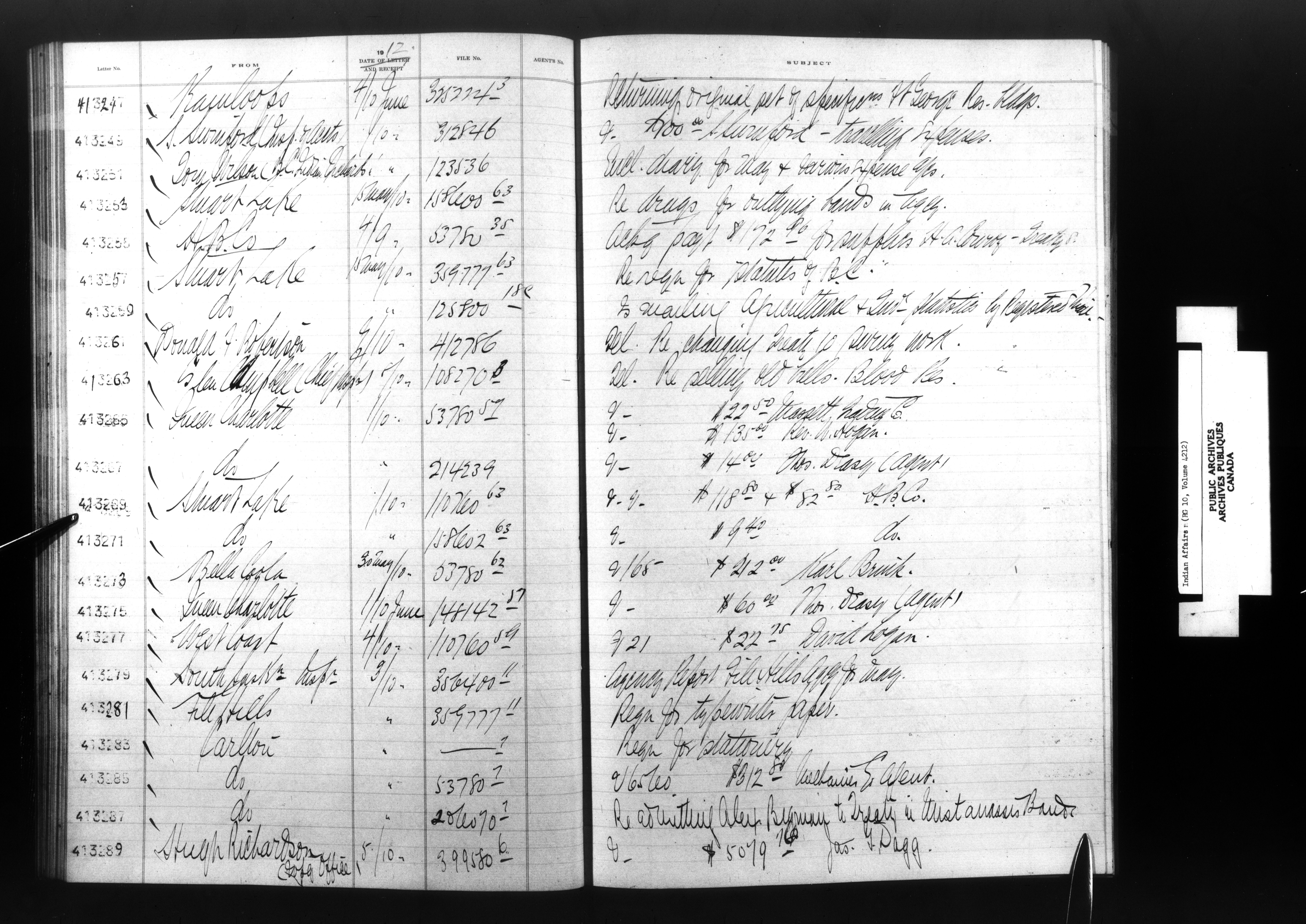 Department of Indian Affairs, Headquarters central registry system : registers, indices and indexed registers - 9052
