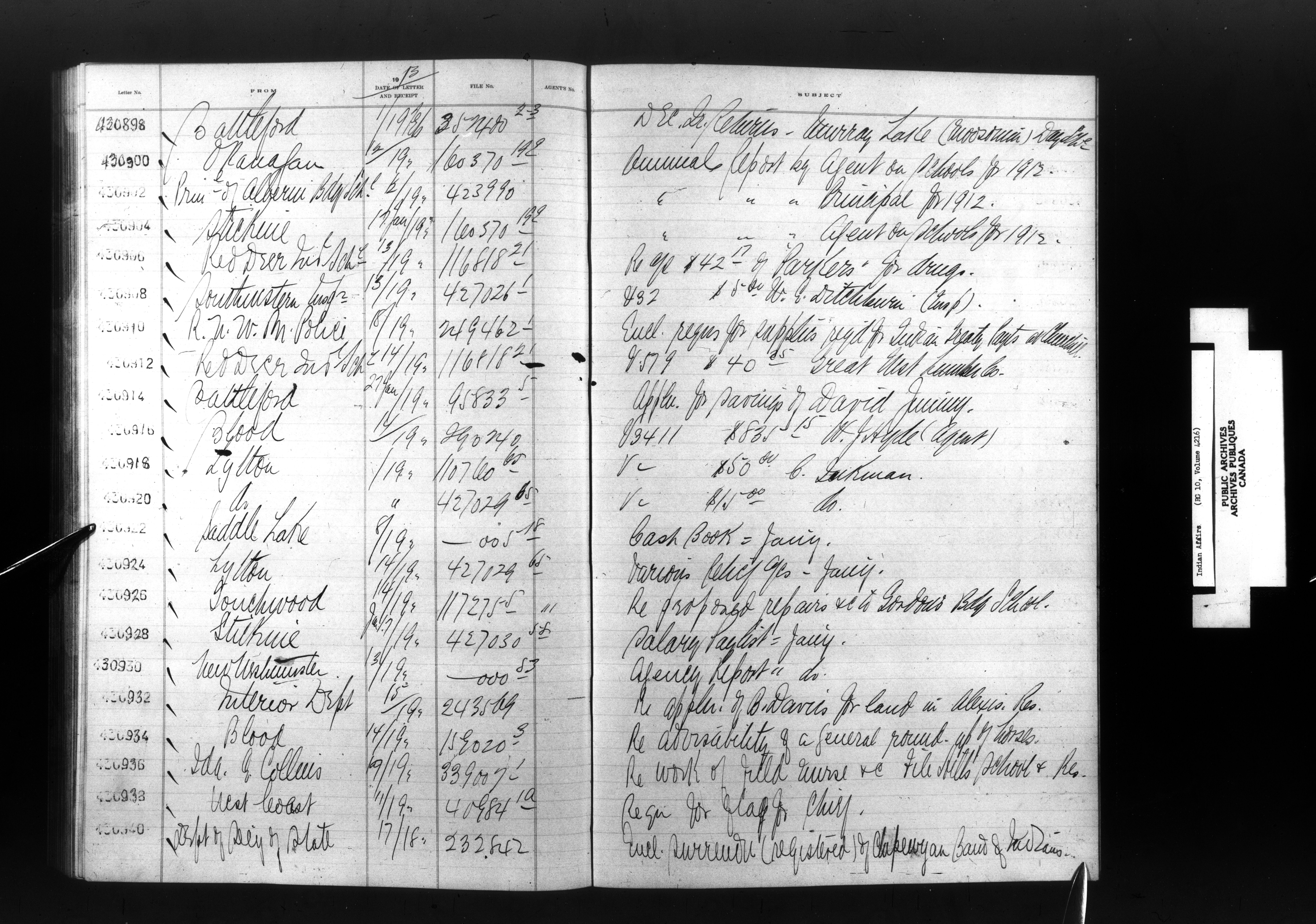 Department of Indian Affairs, Headquarters central registry system : registers, indices and indexed registers - 9053