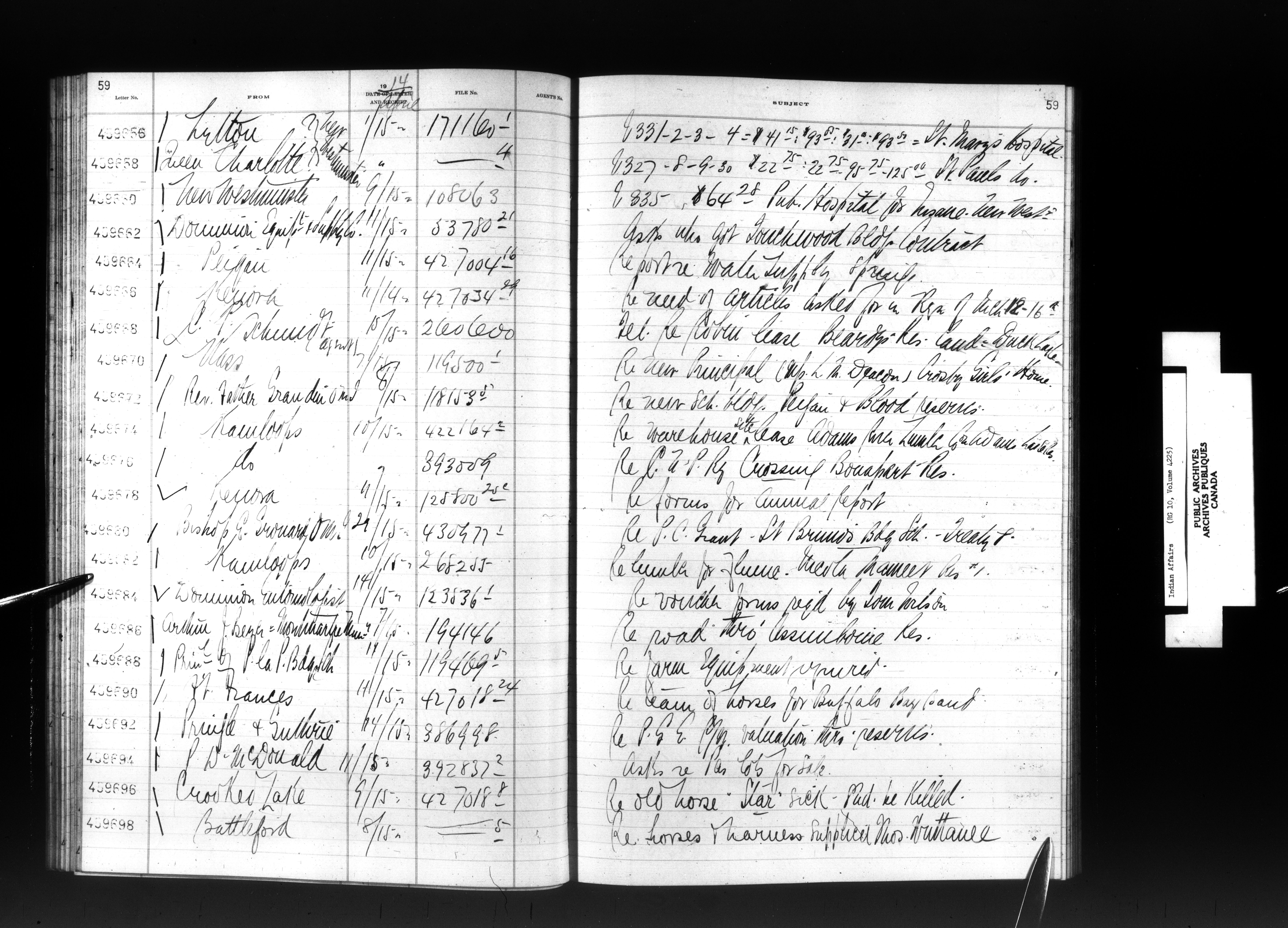 Department of Indian Affairs, Headquarters central registry system :registers, indices and indexed registers : C-9055