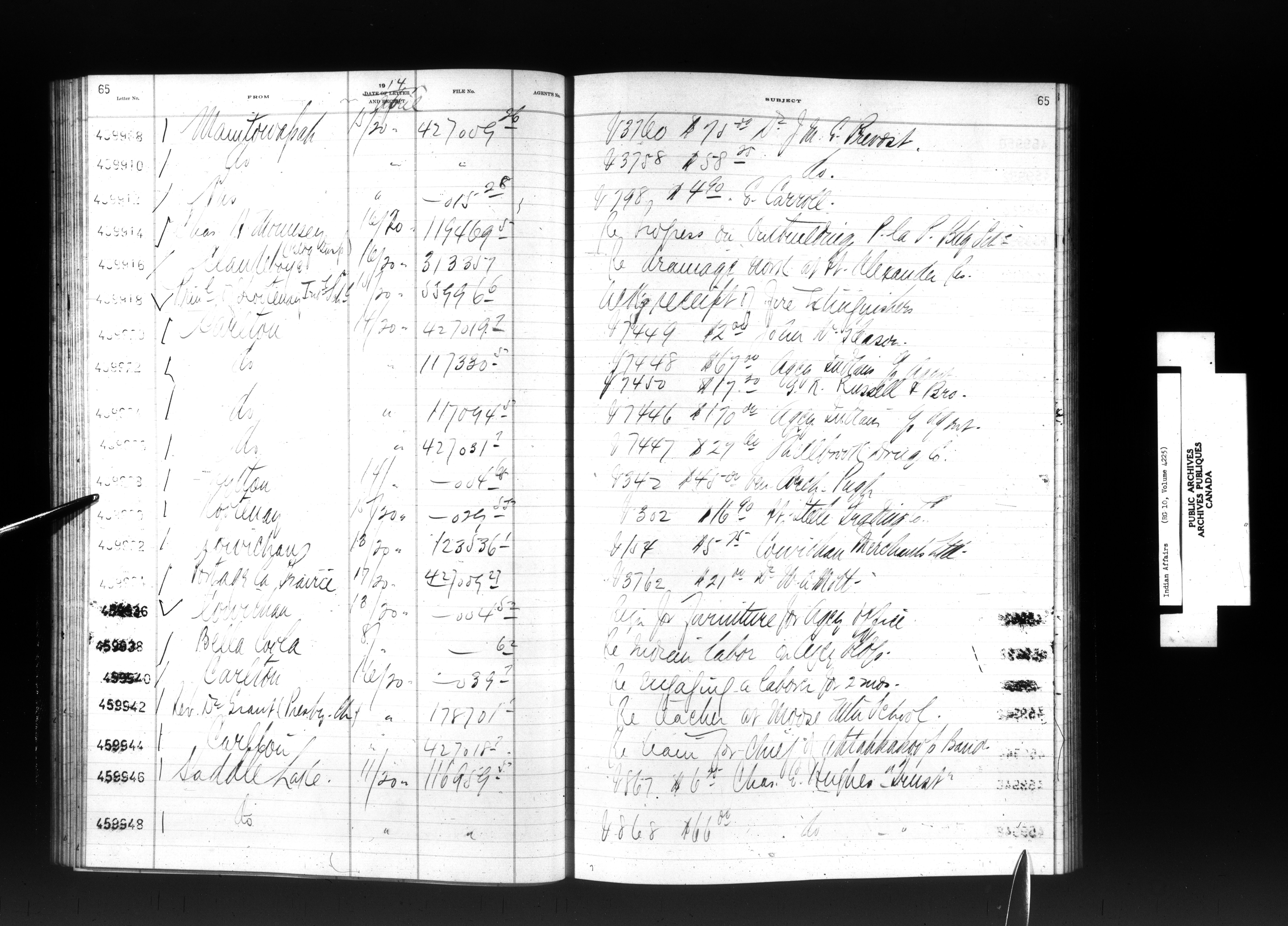 Department of Indian Affairs, Headquarters central registry system :registers, indices and indexed registers : C-9055