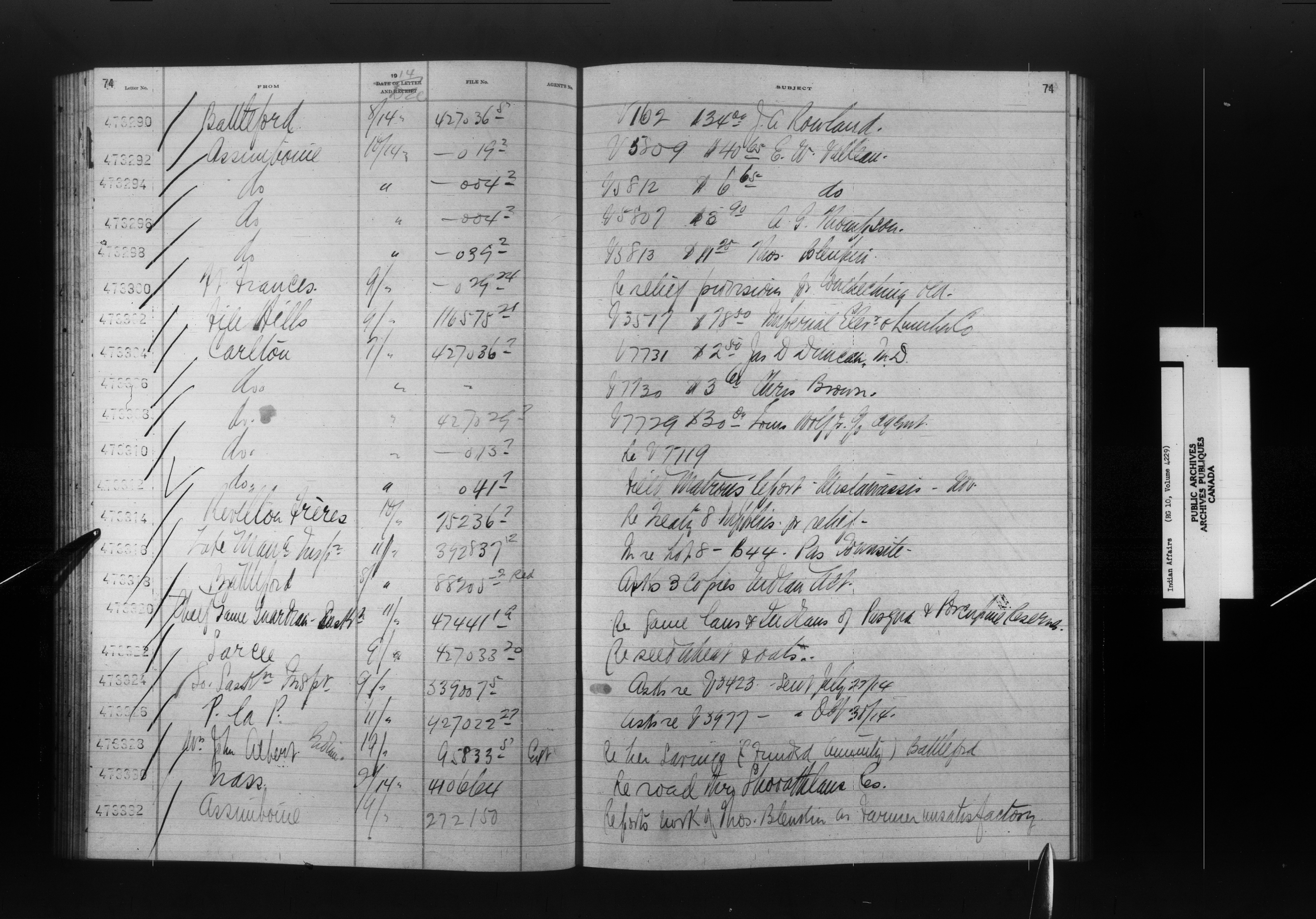 Department of Indian Affairs, Headquarters central registry system : registers, indices and indexed registers - 9056