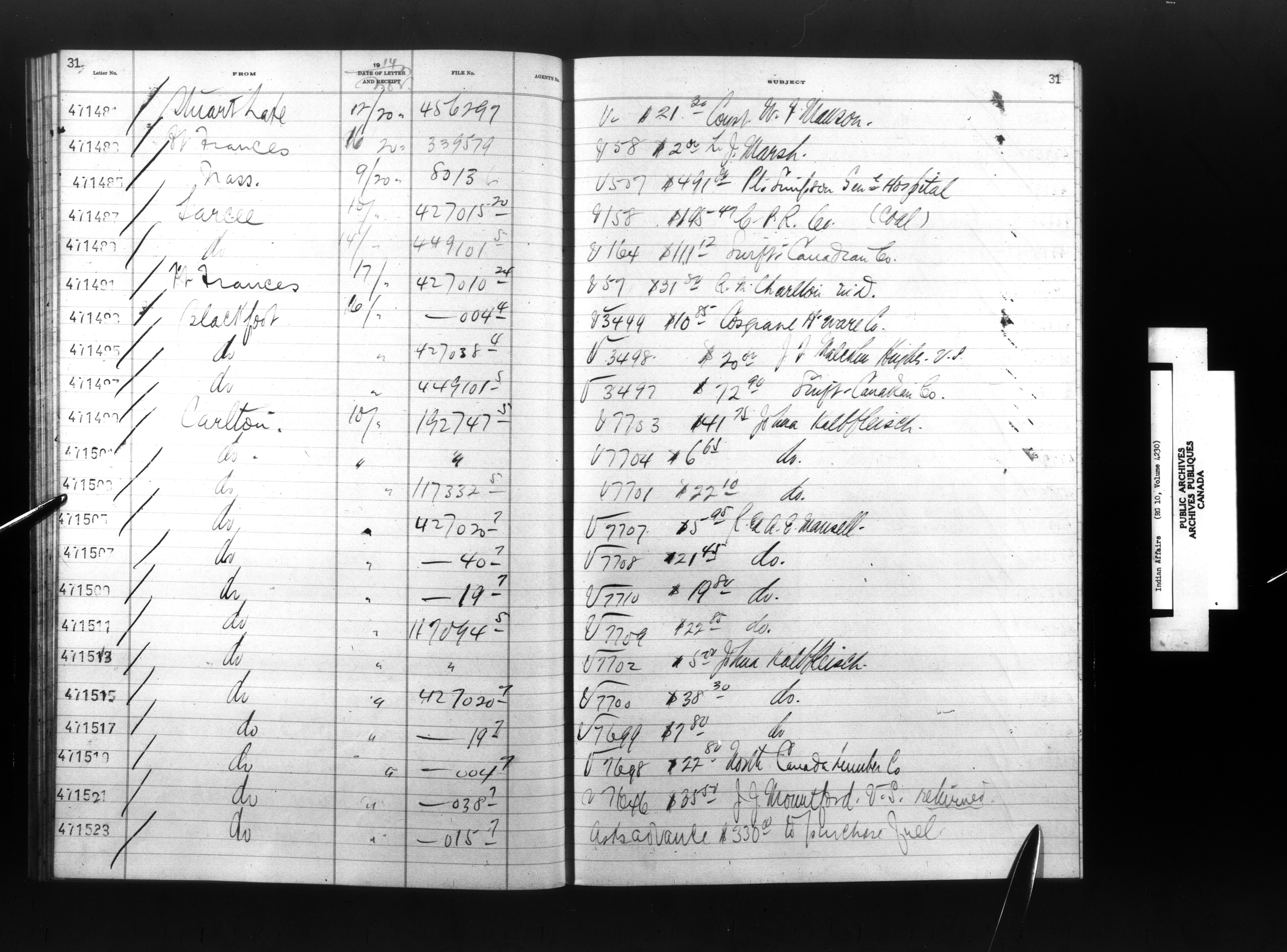 Department of Indian Affairs, Headquarters central registry system : registers, indices and indexed registers - 9057