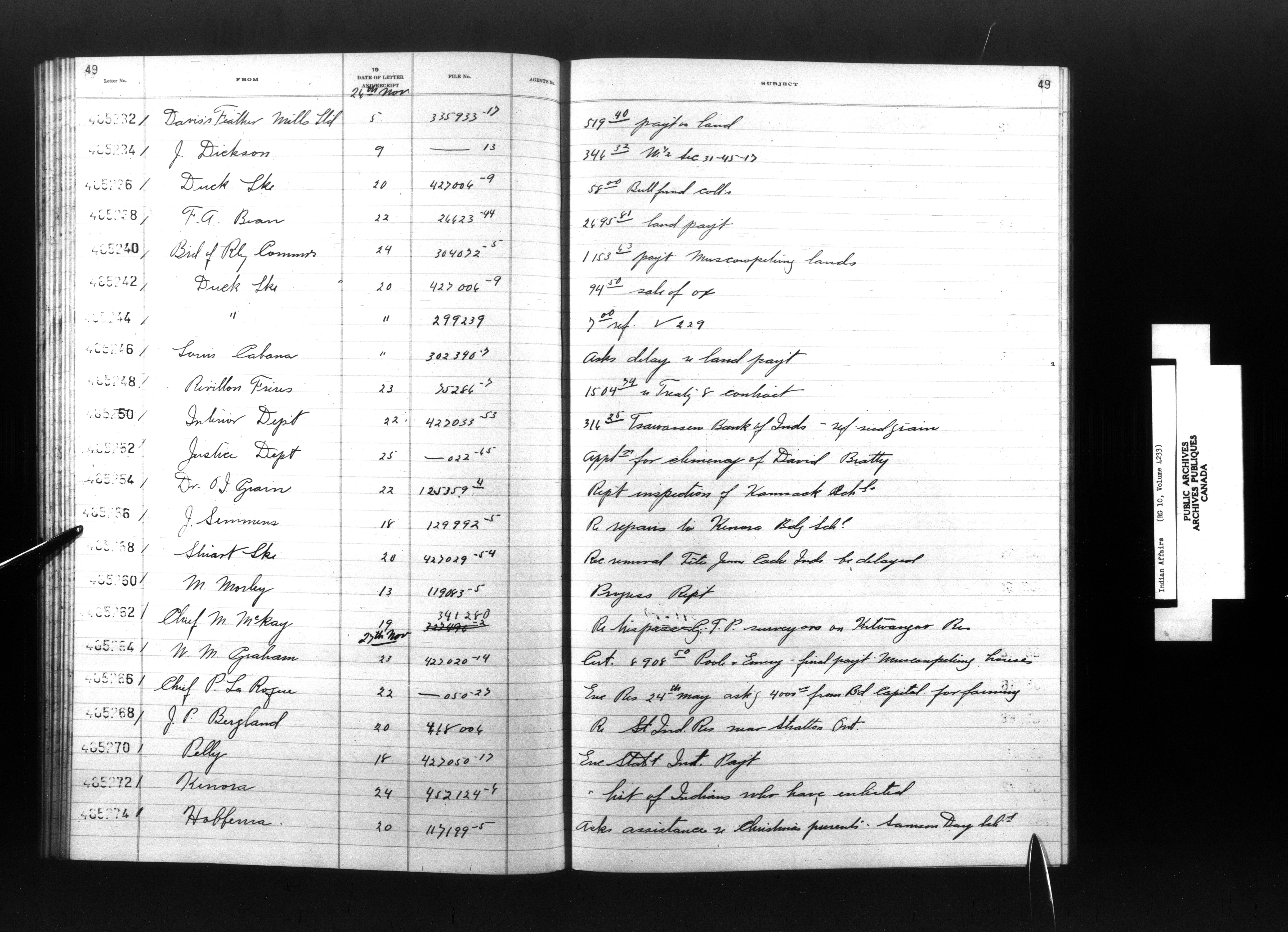 Department of Indian Affairs, Headquarters central registry system : registers, indices and indexed registers - 9057