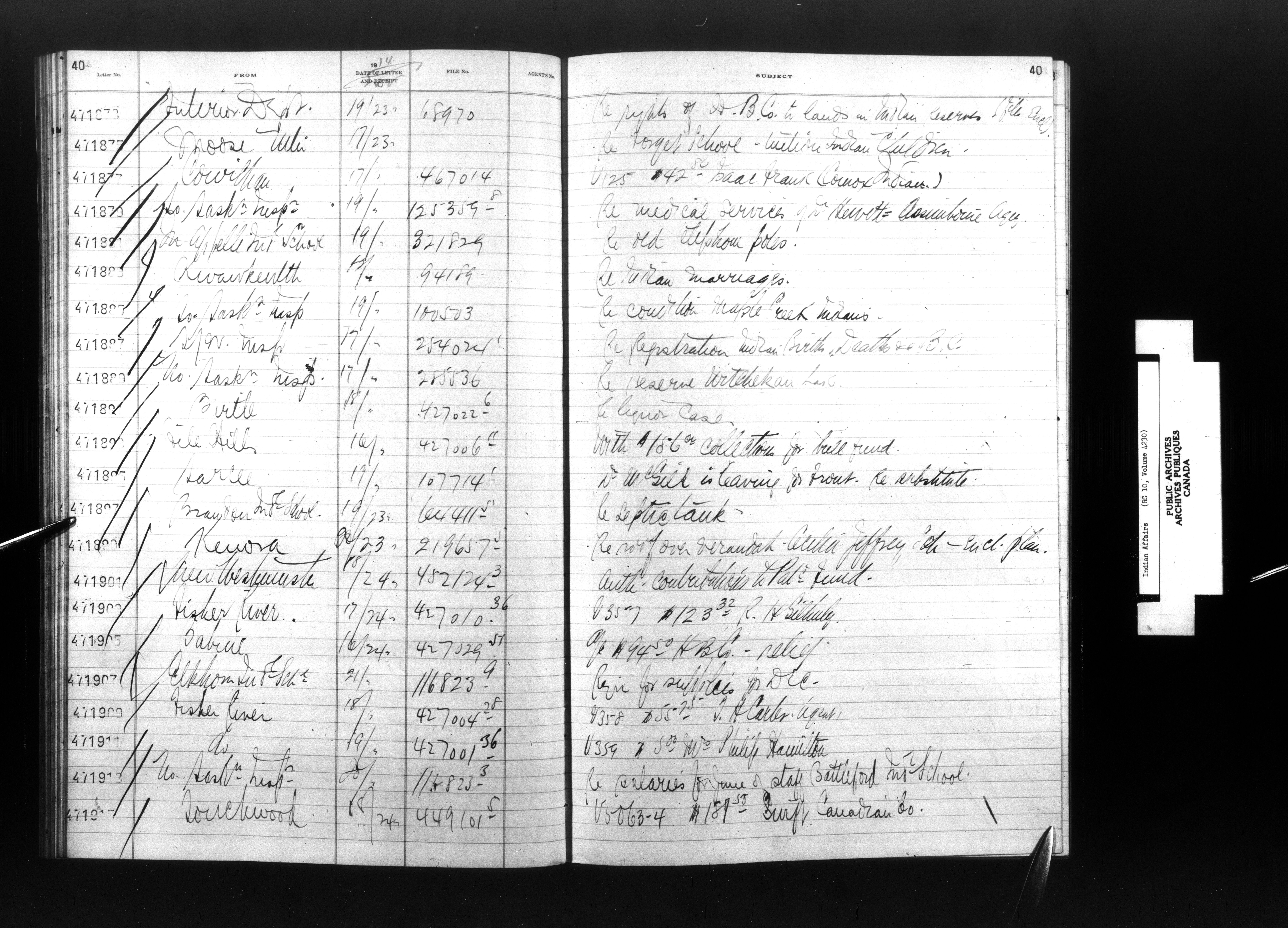 Department of Indian Affairs, Headquarters central registry system : registers, indices and indexed registers - 9057