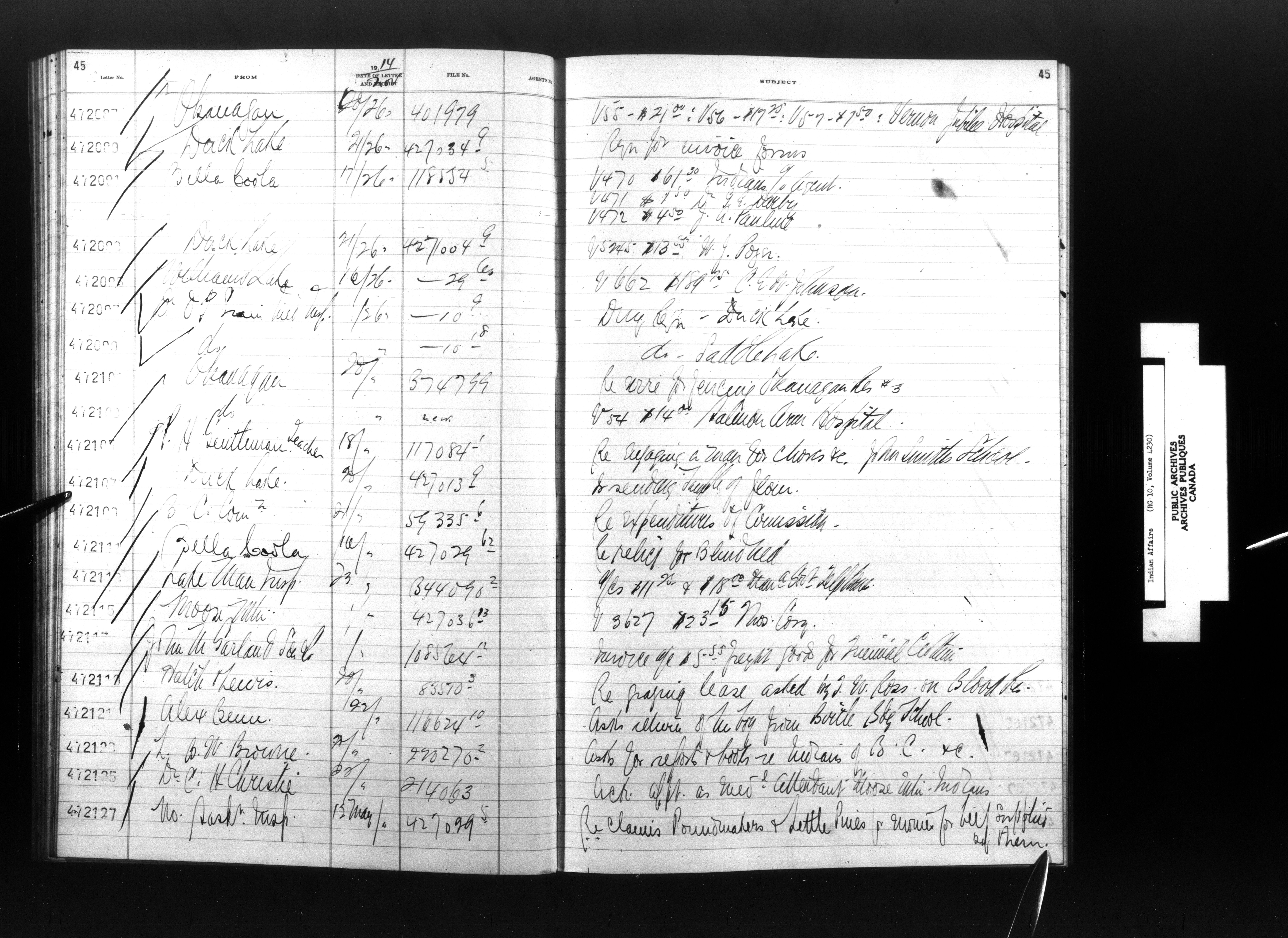 Department of Indian Affairs, Headquarters central registry system : registers, indices and indexed registers - 9057