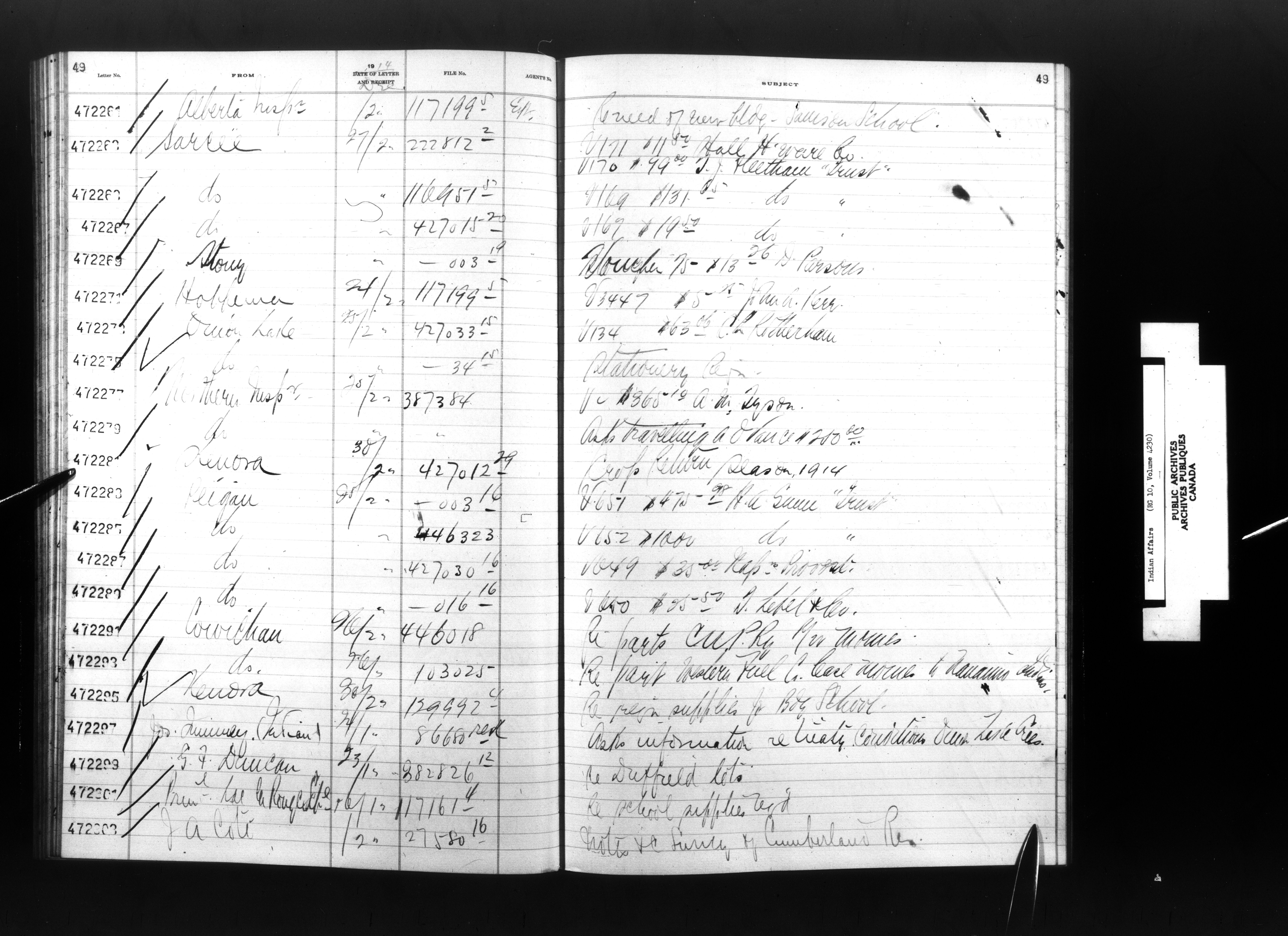 Department of Indian Affairs, Headquarters central registry system : registers, indices and indexed registers - 9057