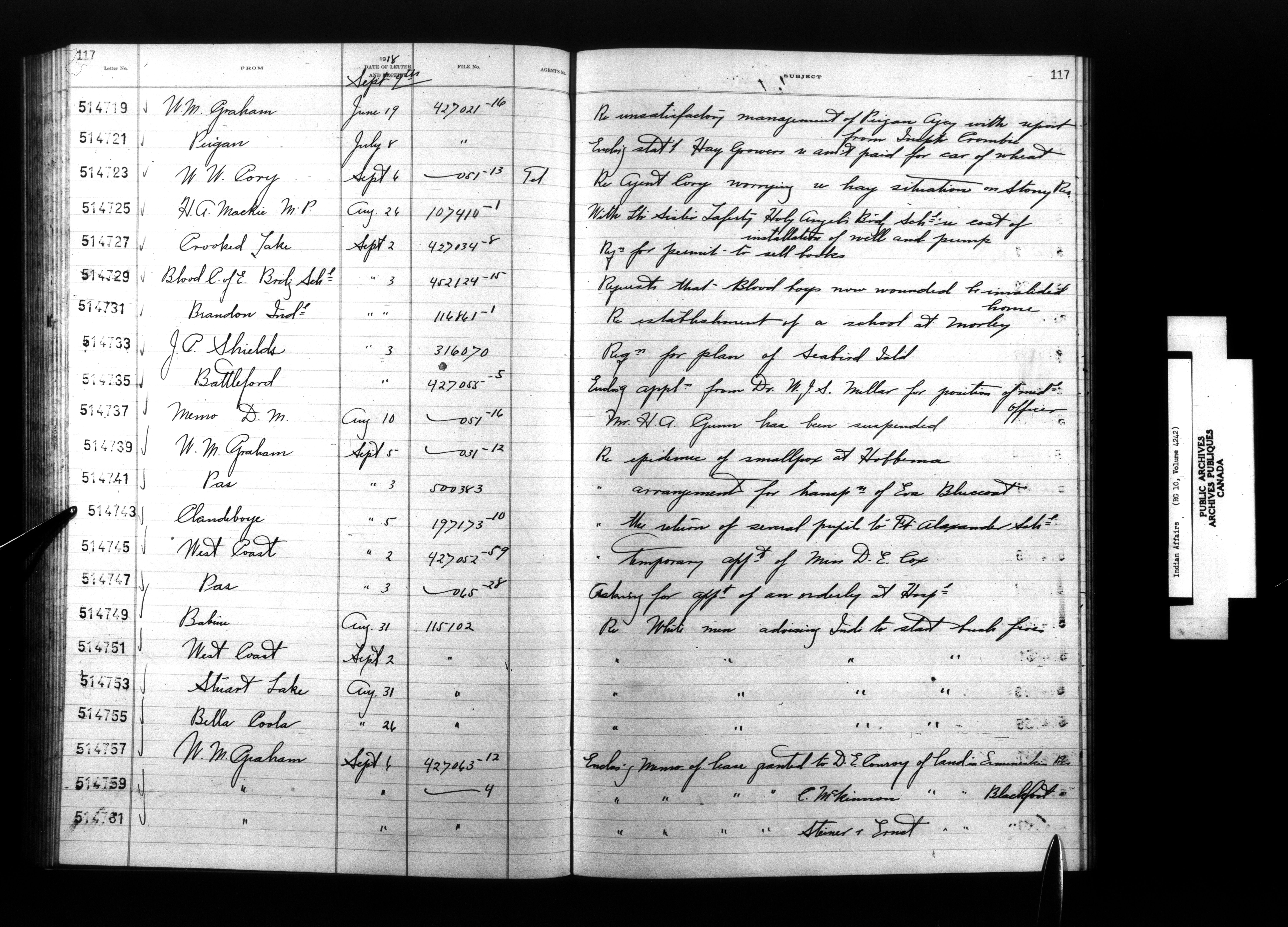 Department of Indian Affairs, Headquarters central registry system :registers, indices and indexed registers : C-9059