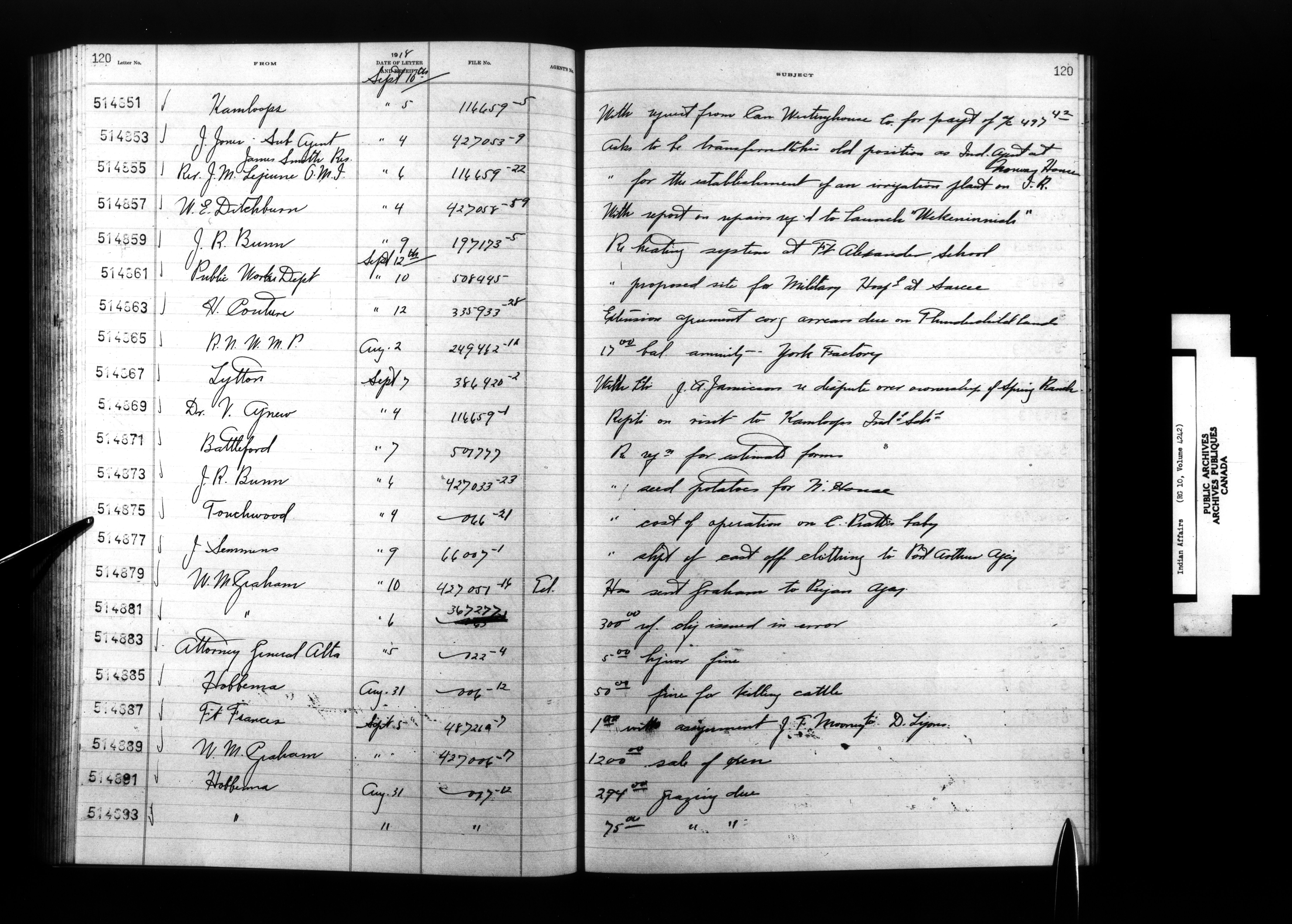 Department of Indian Affairs, Headquarters central registry system : registers, indices and indexed registers - 9059