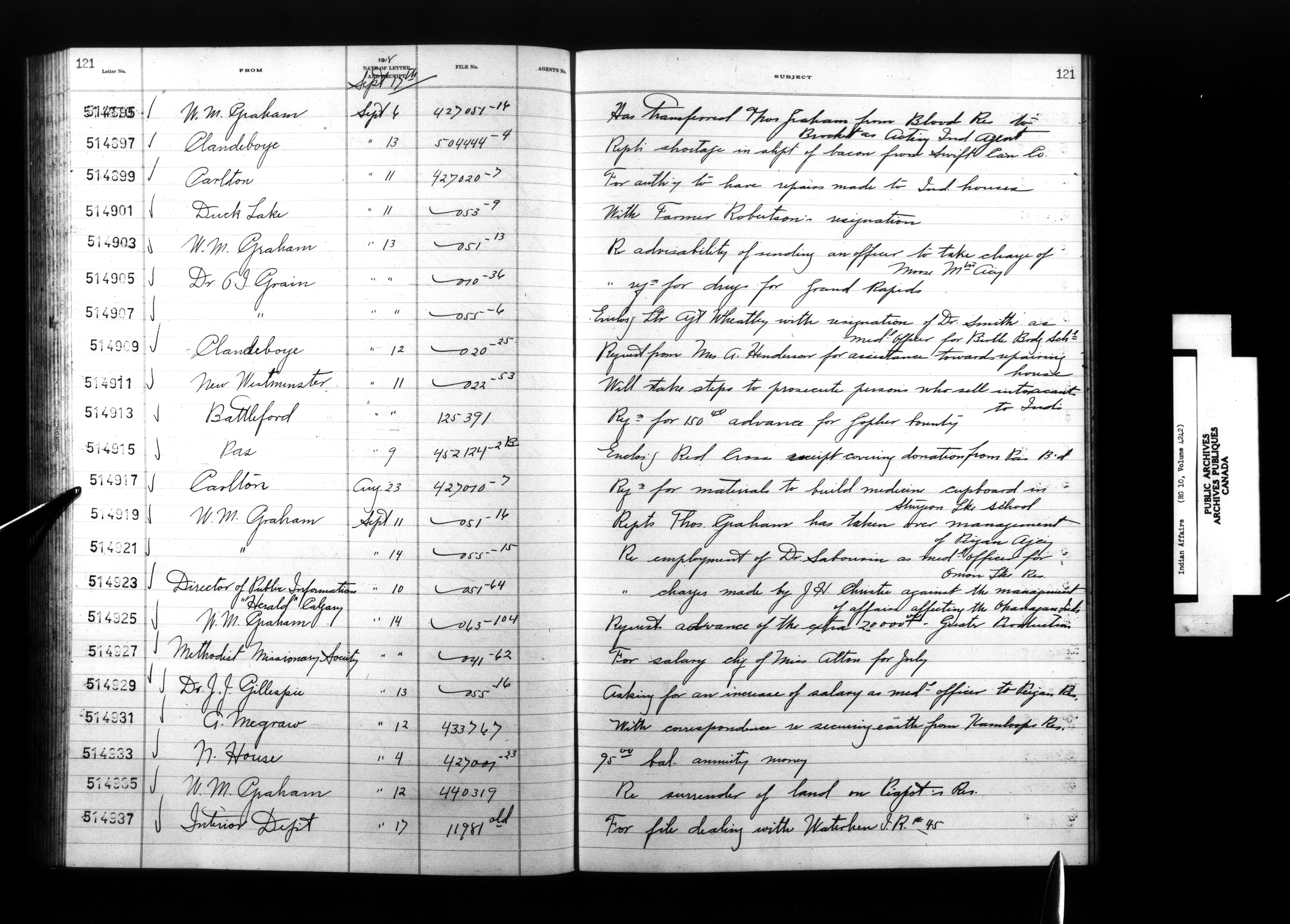 Department of Indian Affairs, Headquarters central registry system :registers, indices and indexed registers : C-9059
