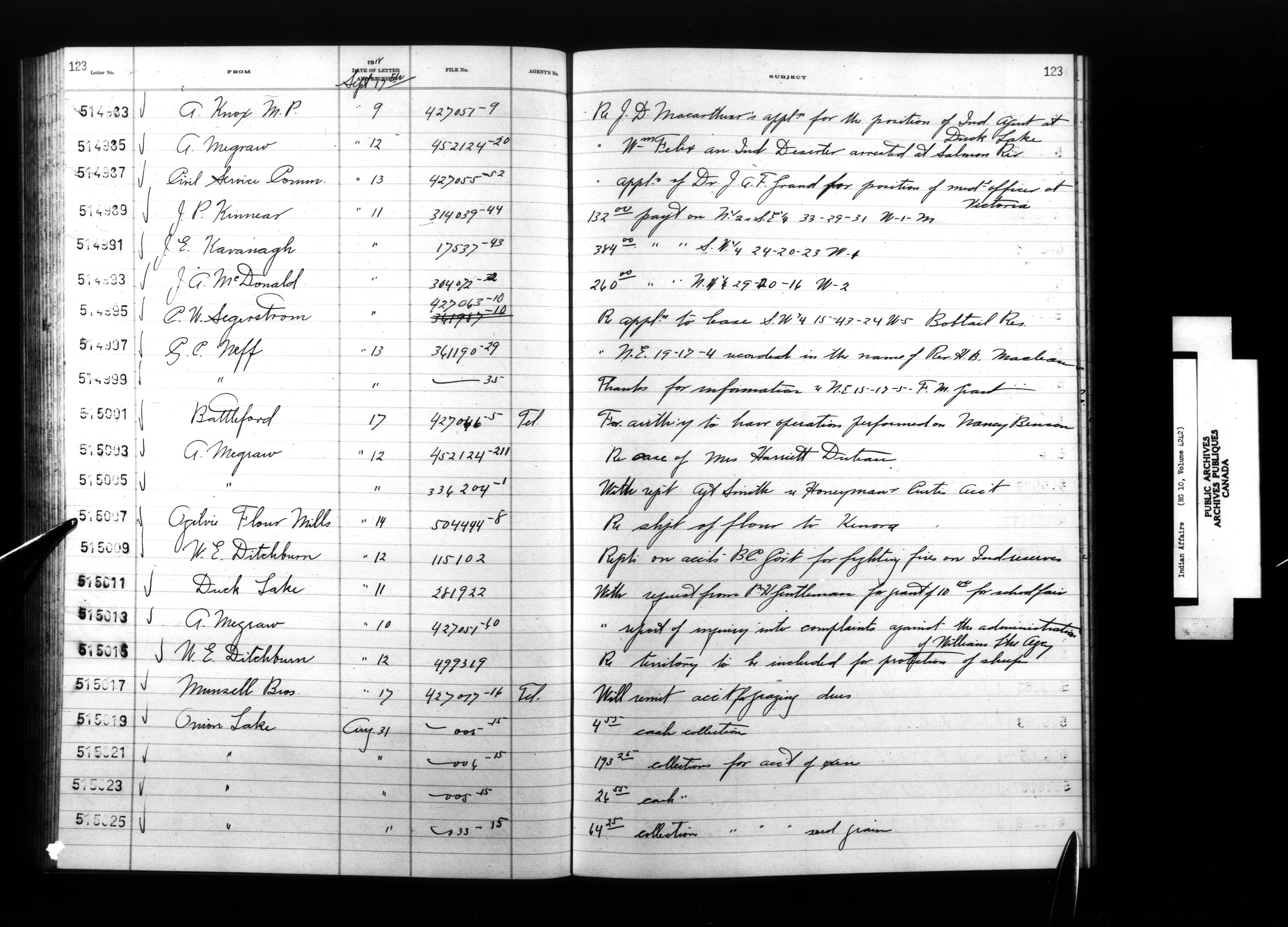 Department of Indian Affairs, Headquarters central registry system :registers, indices and indexed registers : C-9059