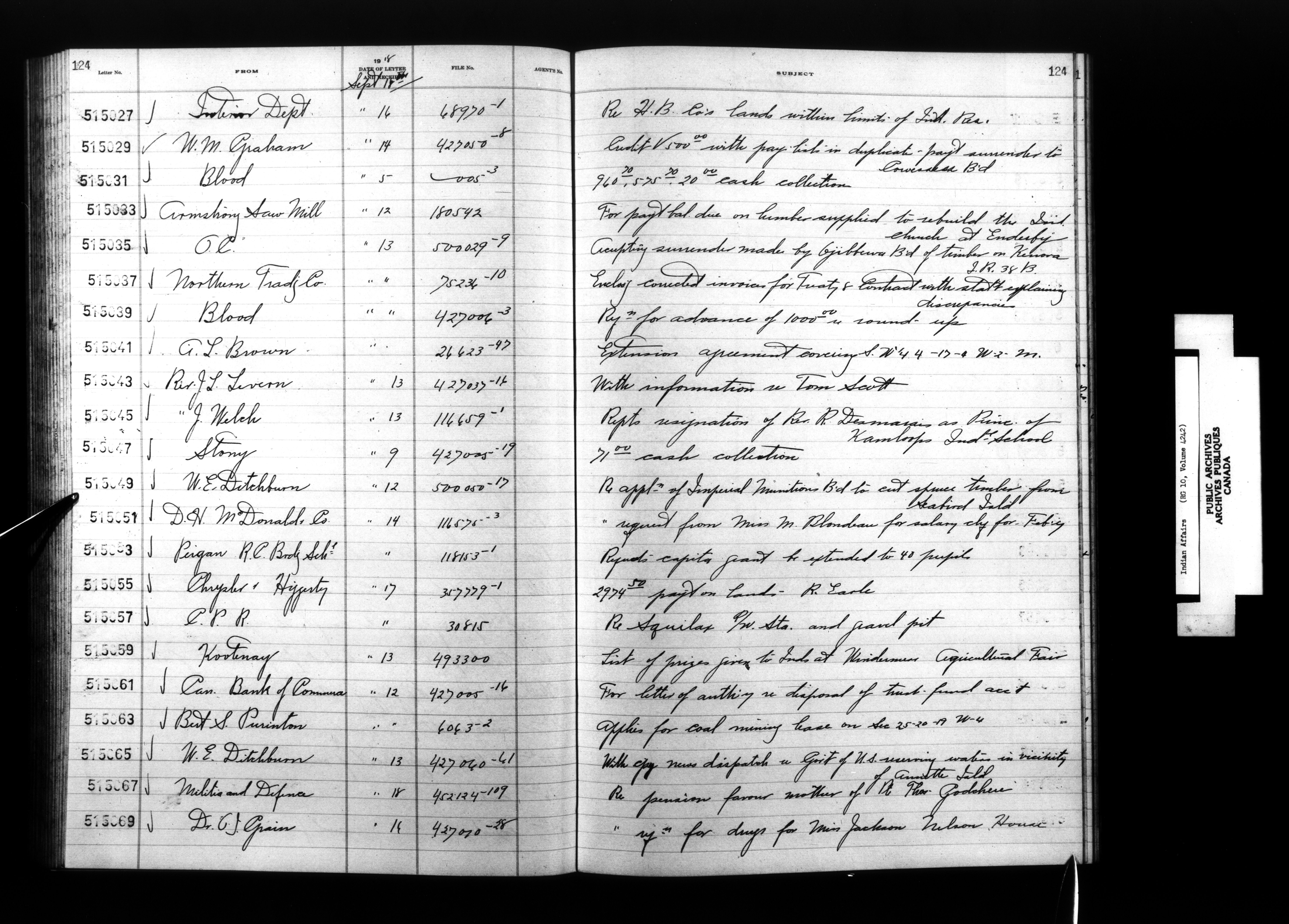 Department of Indian Affairs, Headquarters central registry system : registers, indices and indexed registers - 9059