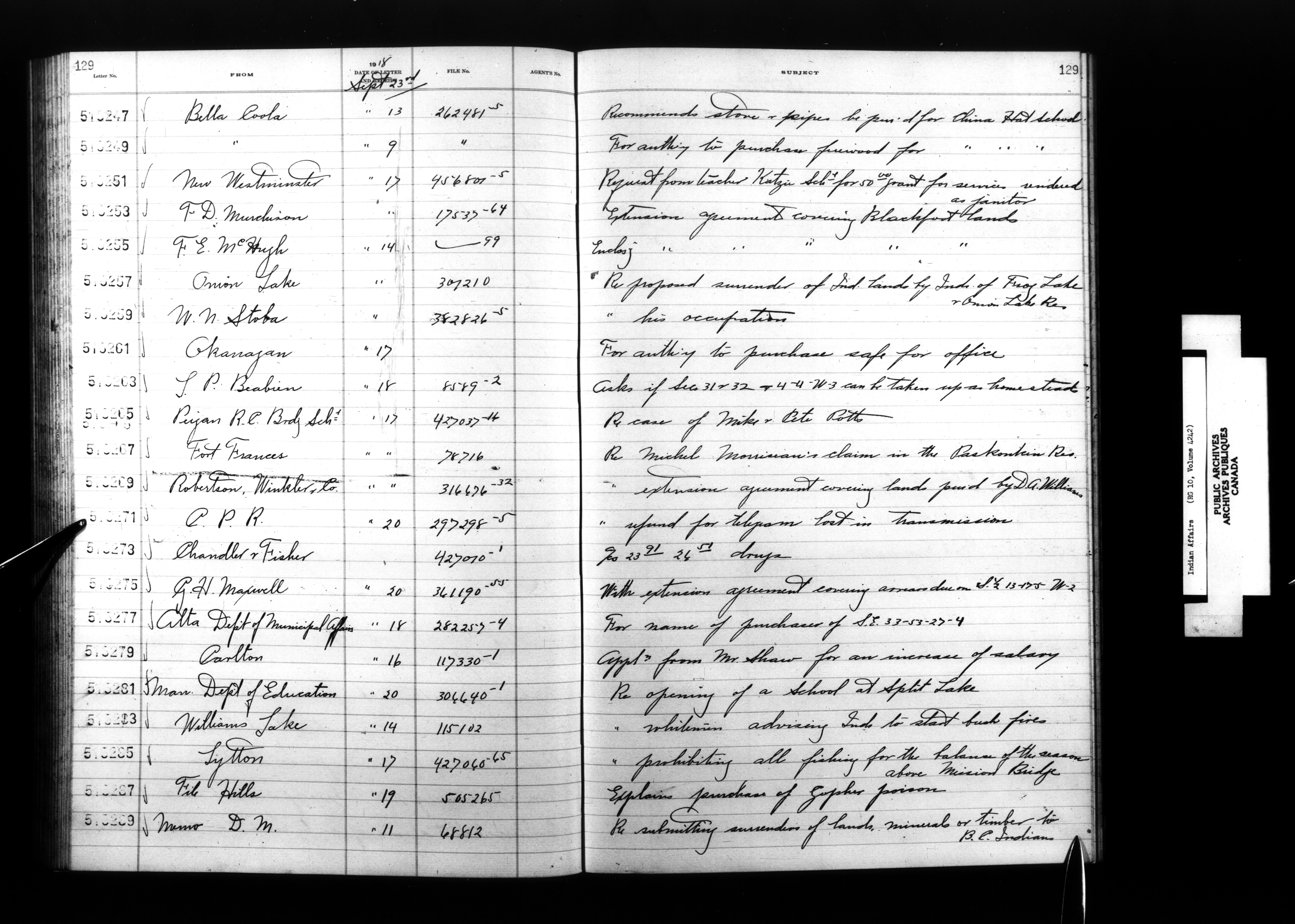 Department of Indian Affairs, Headquarters central registry system : registers, indices and indexed registers - 9059