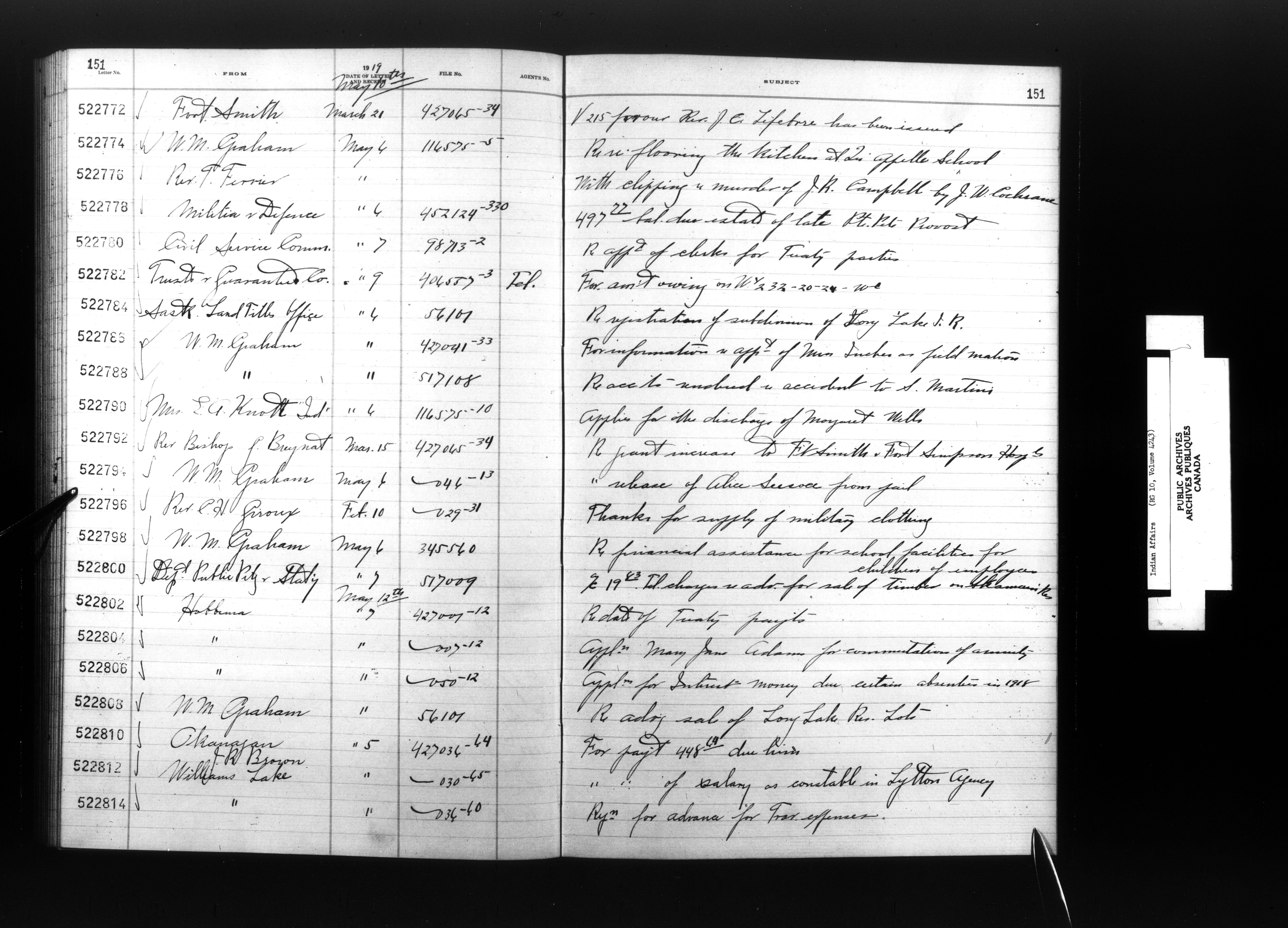Department of Indian Affairs, Headquarters central registry system :registers, indices and indexed registers : C-9060