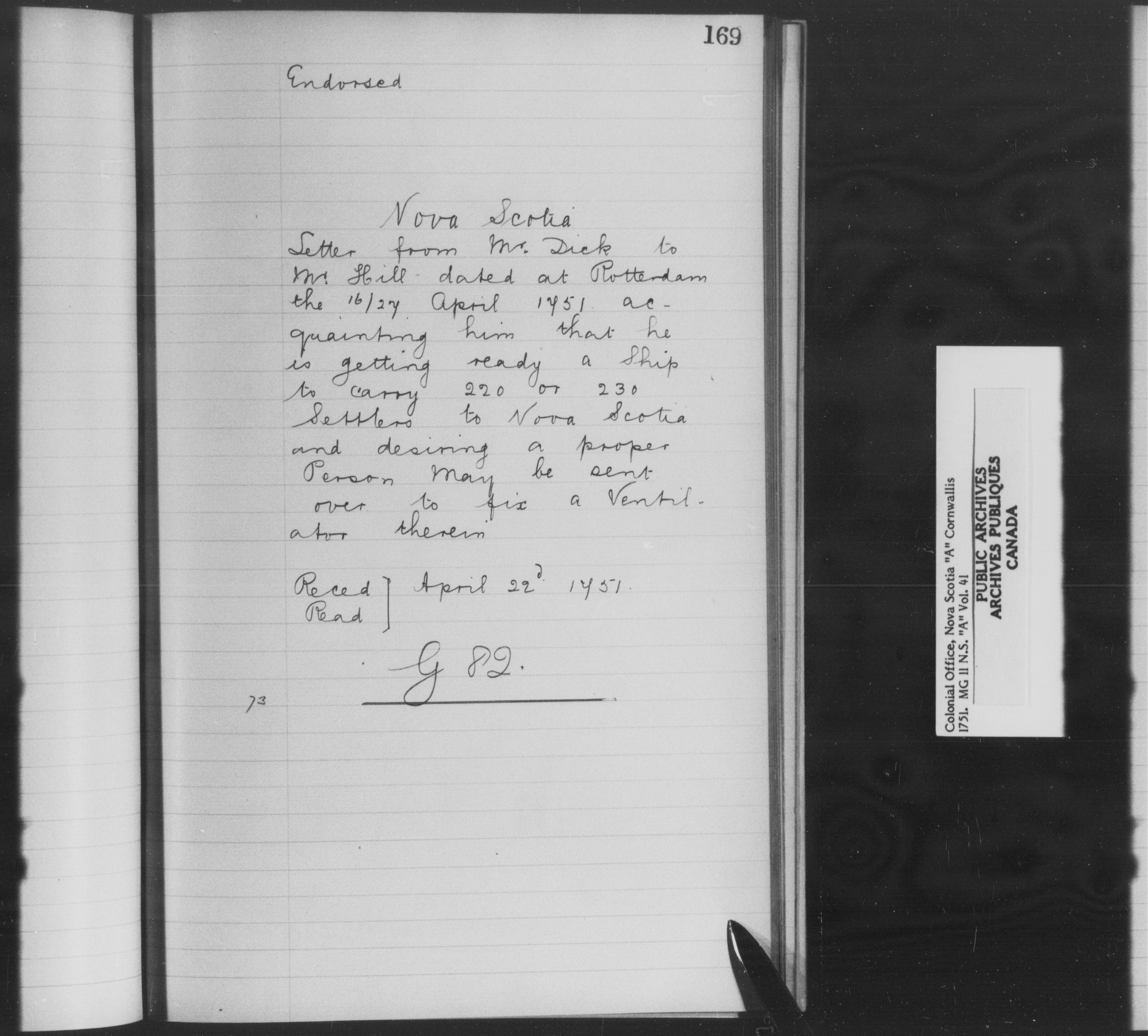 Great Britain. Colonial Office : Nova Scotia and Cape Breton, Original Correspondence (CO 217) - 9125