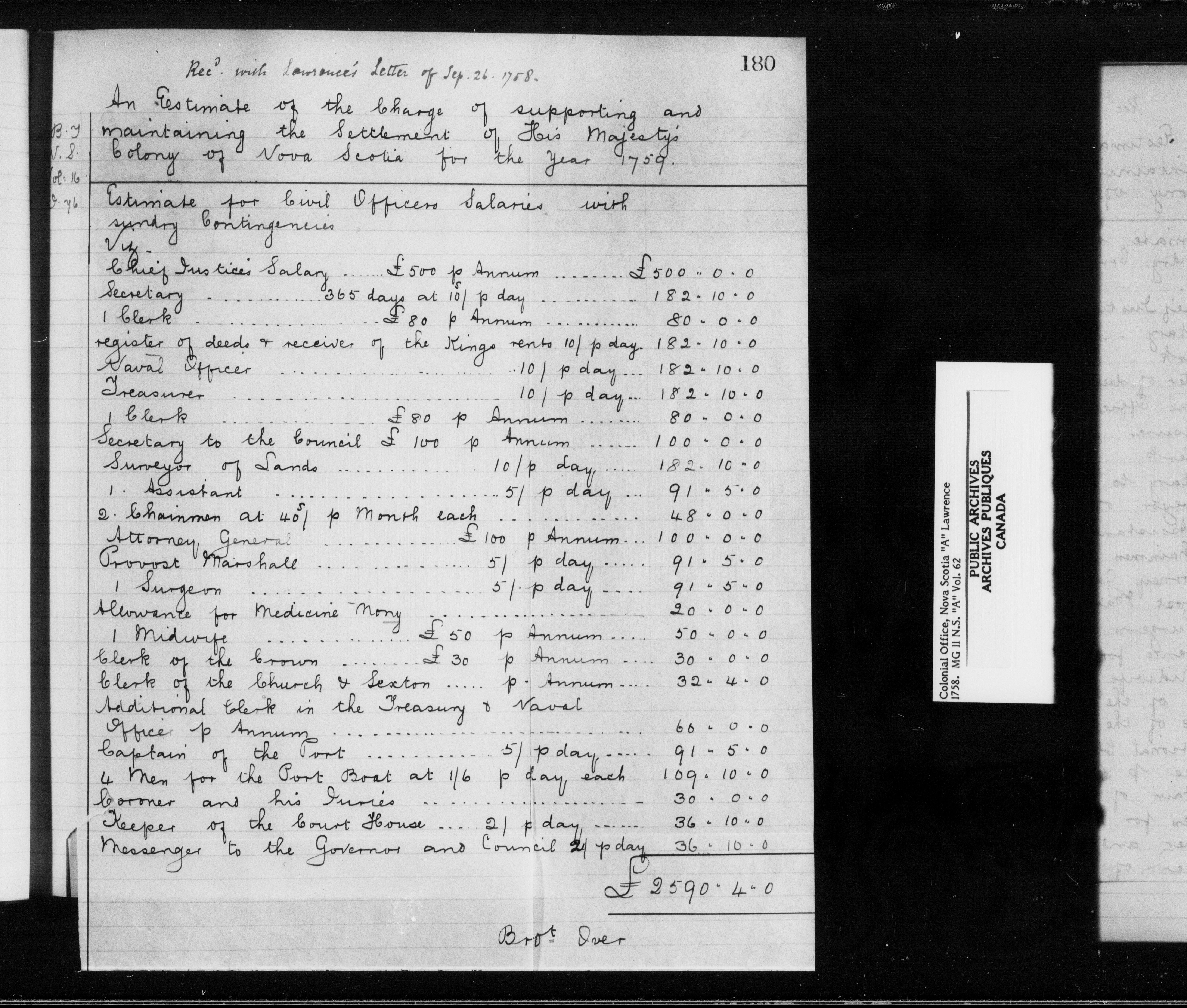 Great Britain. Colonial Office : Nova Scotia and Cape Breton, Original Correspondence (CO 217) - 9127