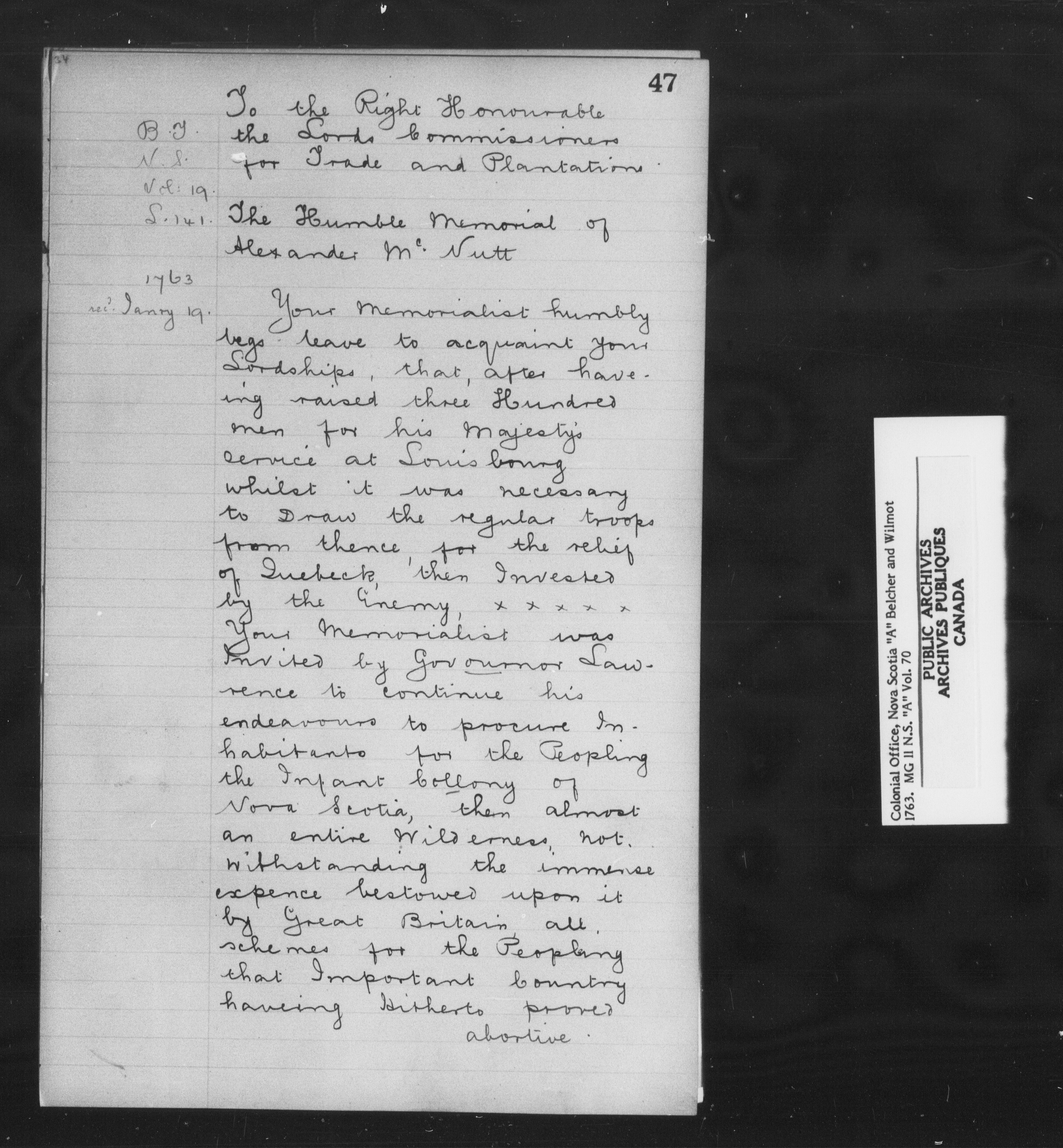 Great Britain. Colonial Office : Nova Scotia and Cape Breton, Original Correspondence (CO 217) - 9129