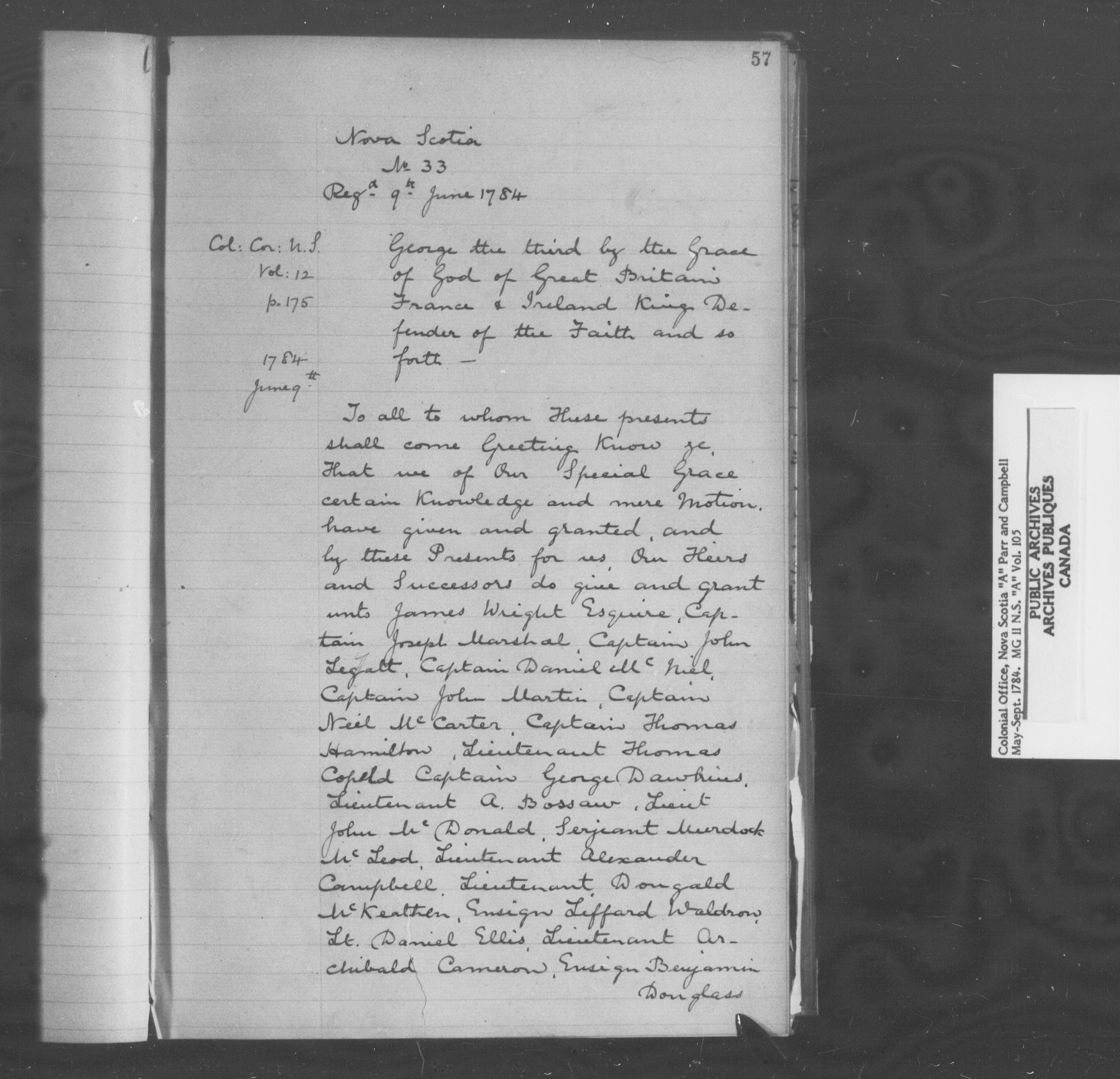 Great Britain. Colonial Office : Nova Scotia and Cape Breton, Original Correspondence (CO 217) - 9134