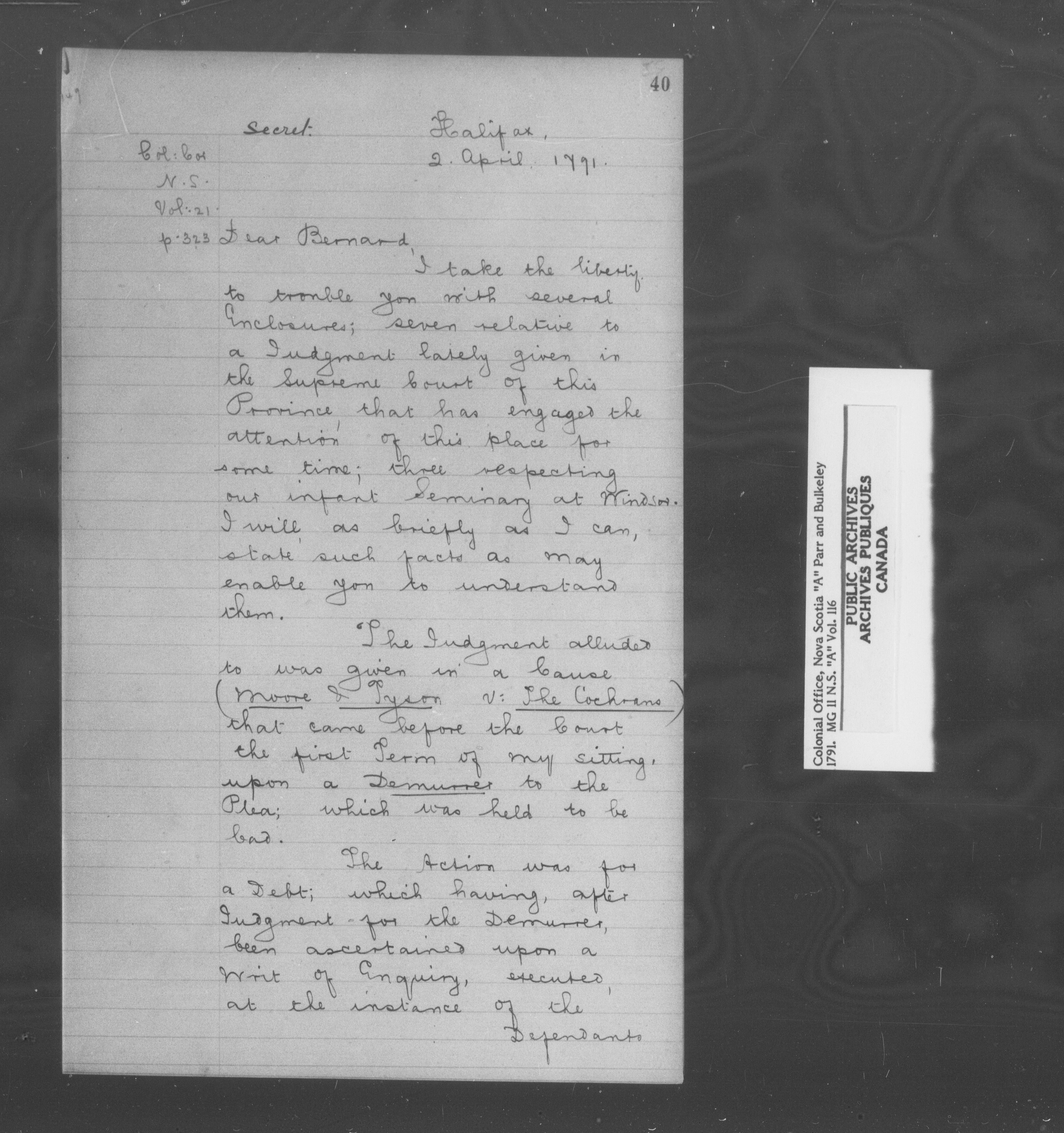 Great Britain. Colonial Office : Nova Scotia and Cape Breton, Original Correspondence (CO 217) - 9136