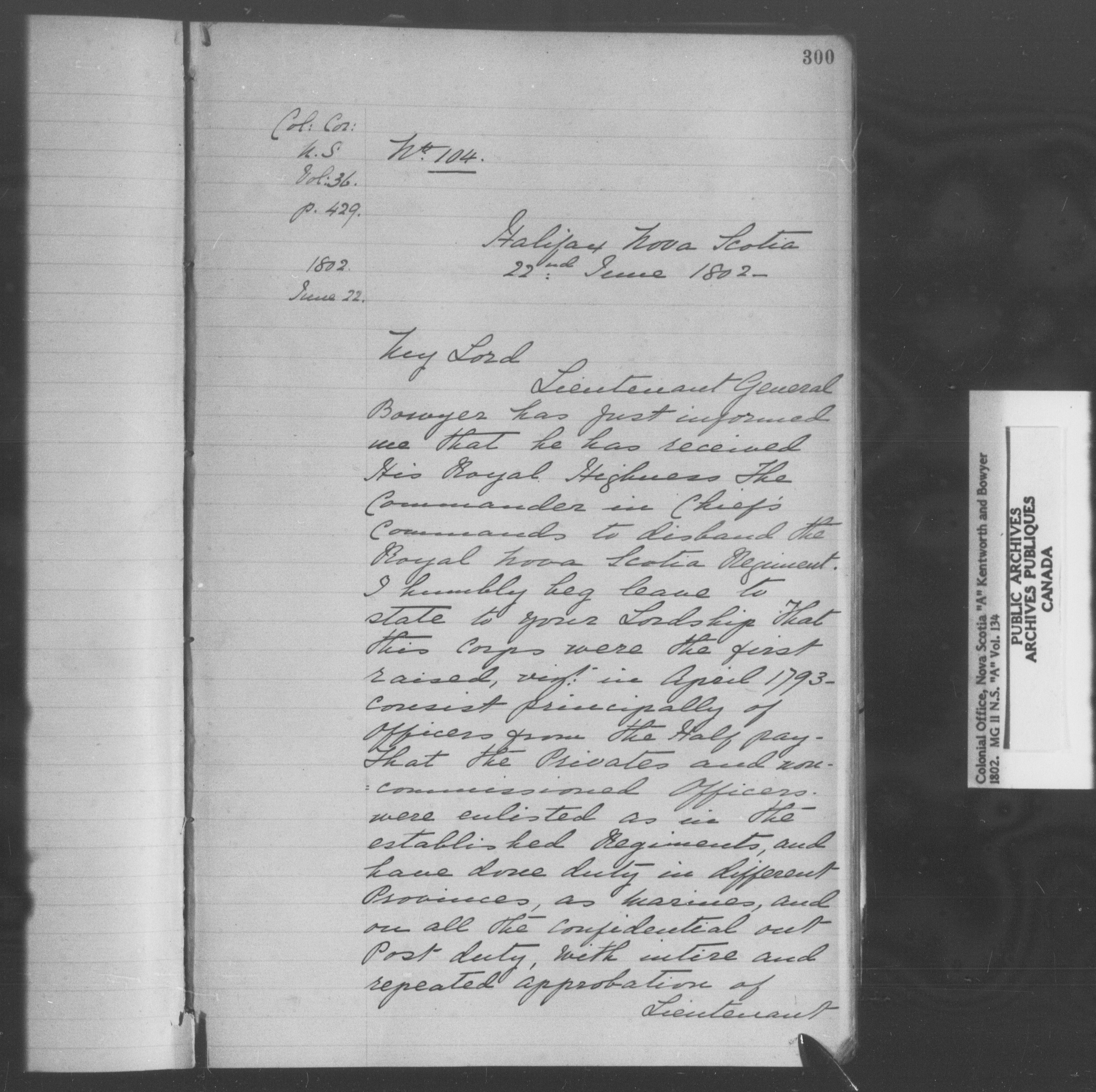 Great Britain. Colonial Office : Nova Scotia and Cape Breton, Original Correspondence (CO 217) - 9138