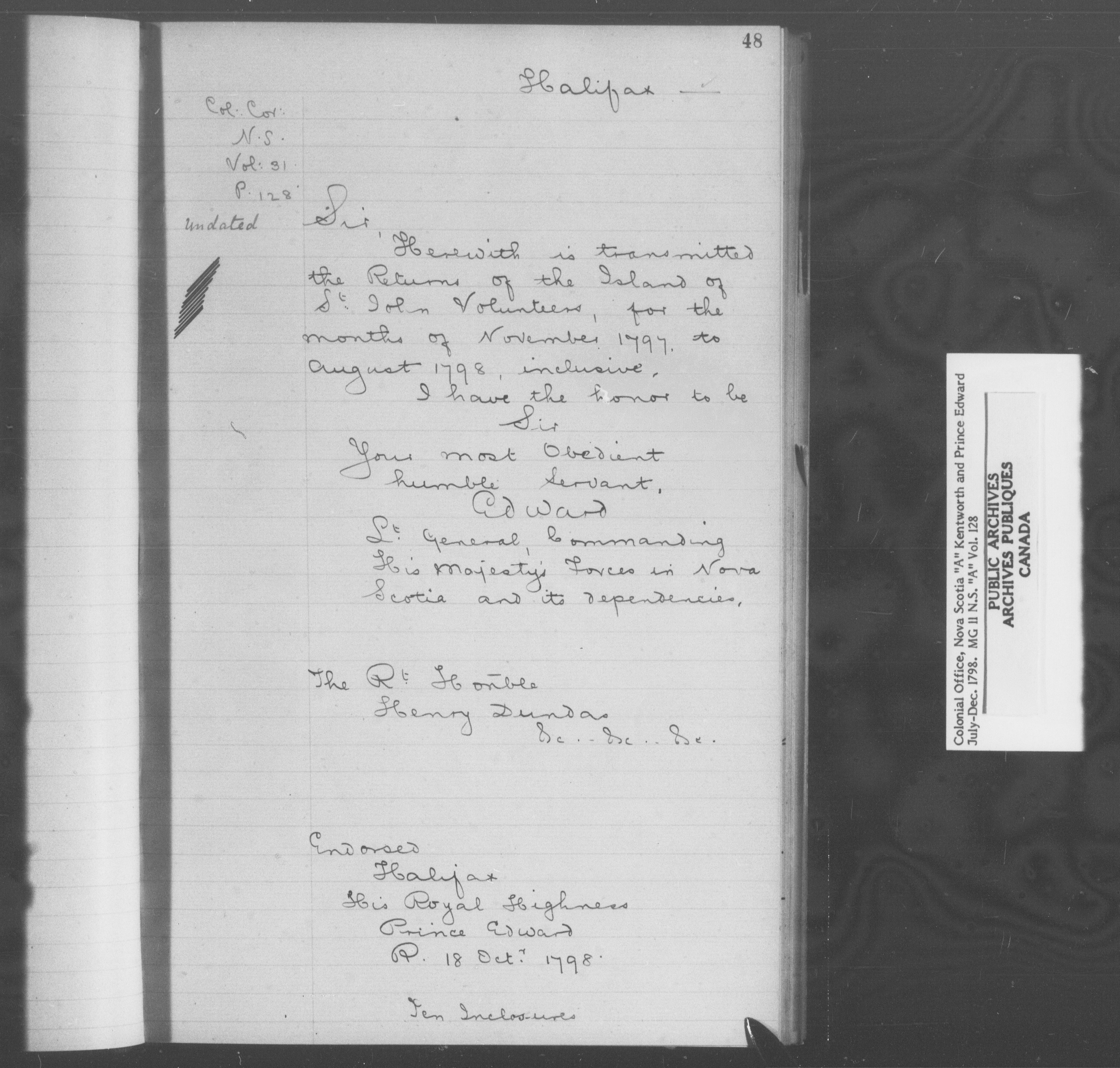 Great Britain. Colonial Office : Nova Scotia and Cape Breton, Original Correspondence (CO 217) - 9138