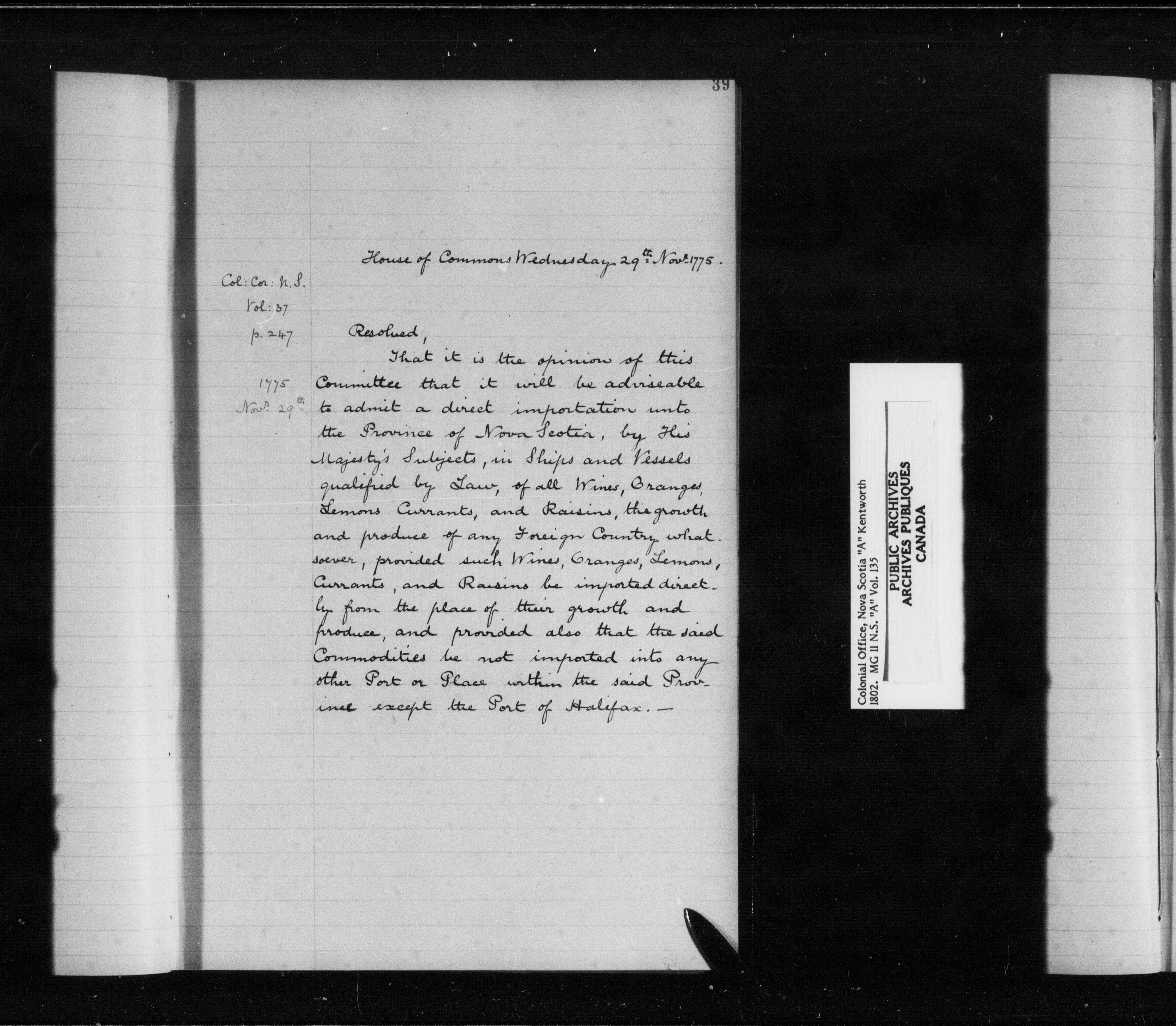 Great Britain. Colonial Office : Nova Scotia and Cape Breton, Original Correspondence (CO 217) - 9139