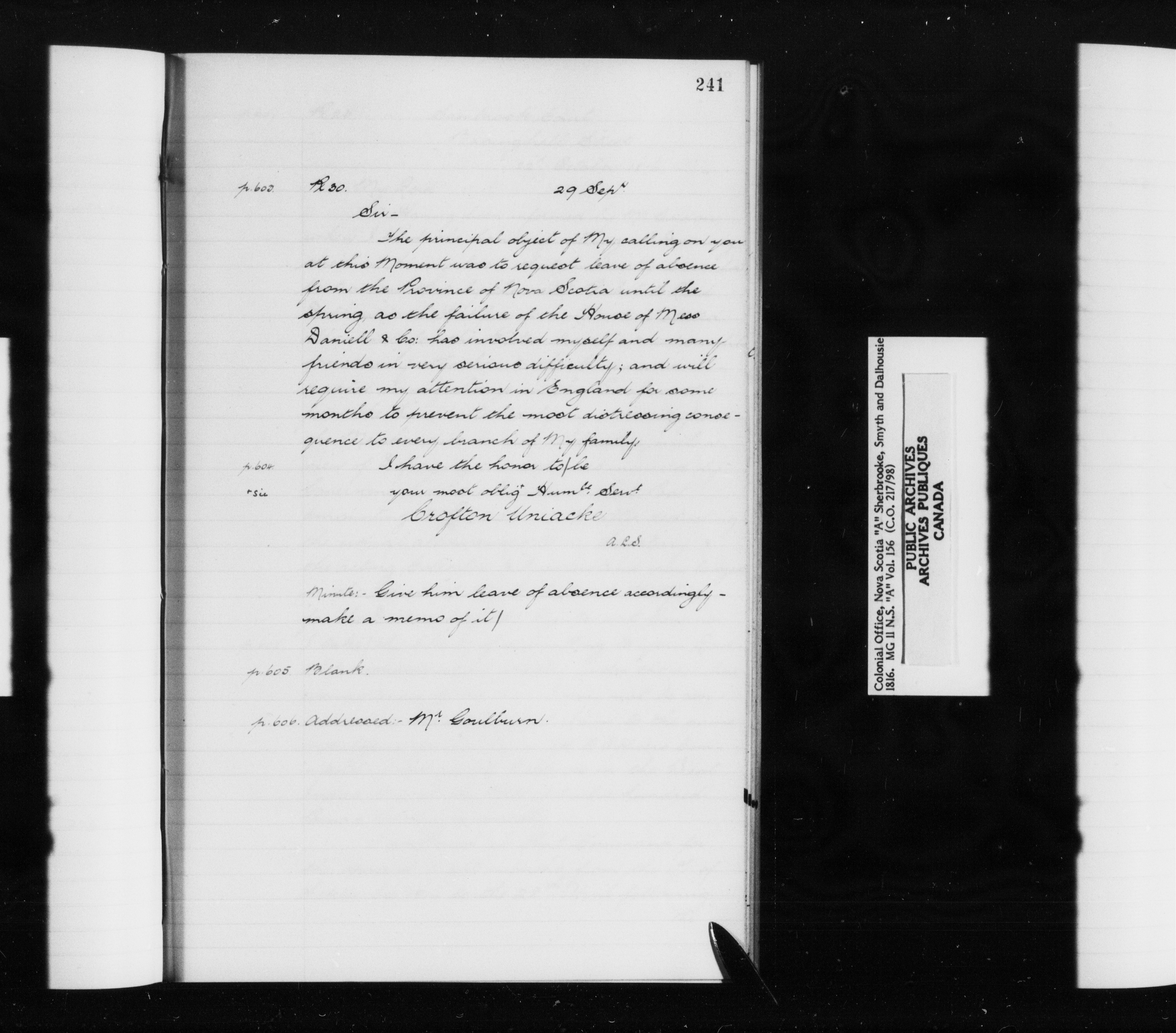 Nova Scotia and Cape Breton, Original Correspondence (CO 217) : C-9141