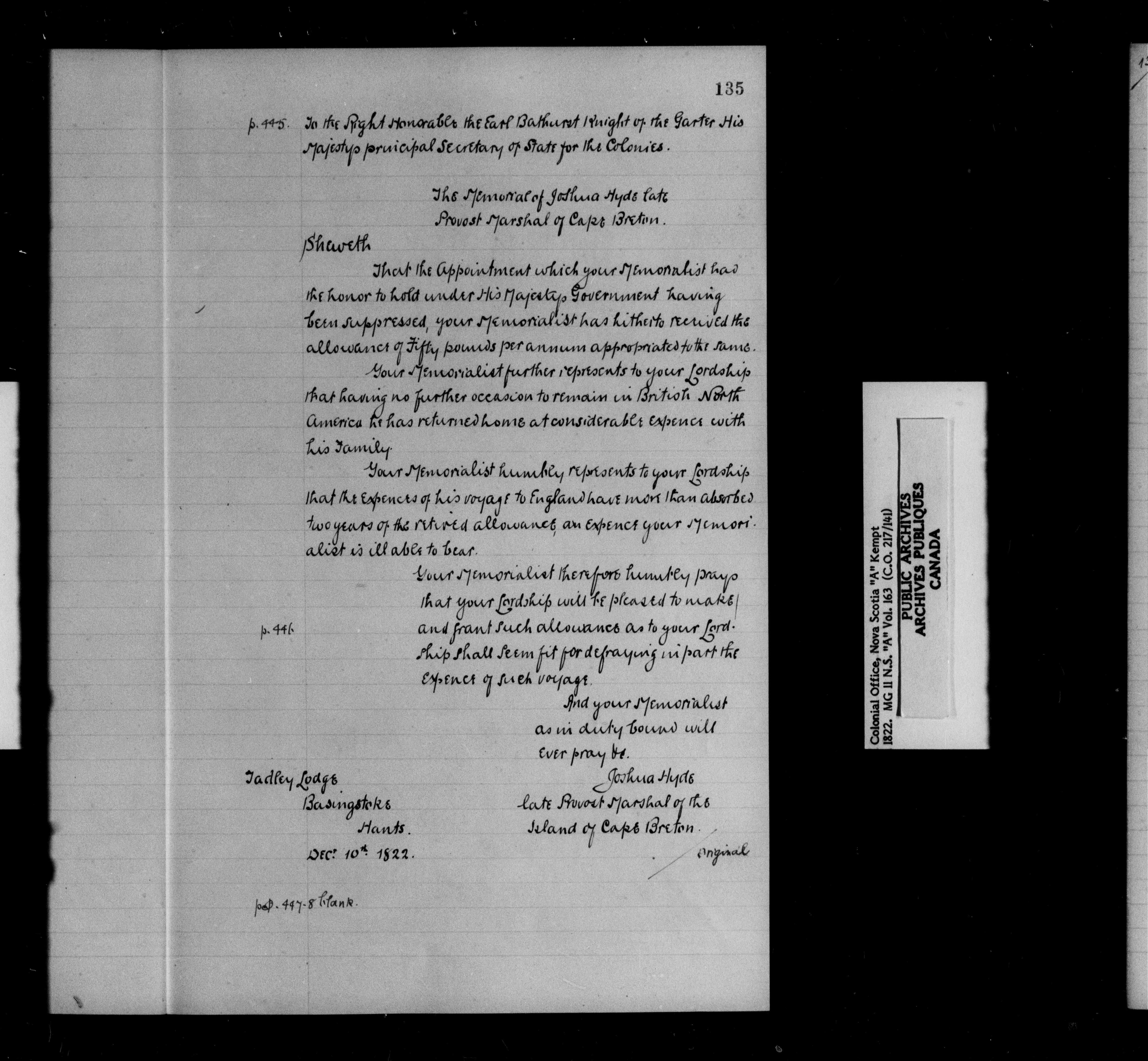 Nova Scotia and Cape Breton, Original Correspondence (CO 217) : C-9142