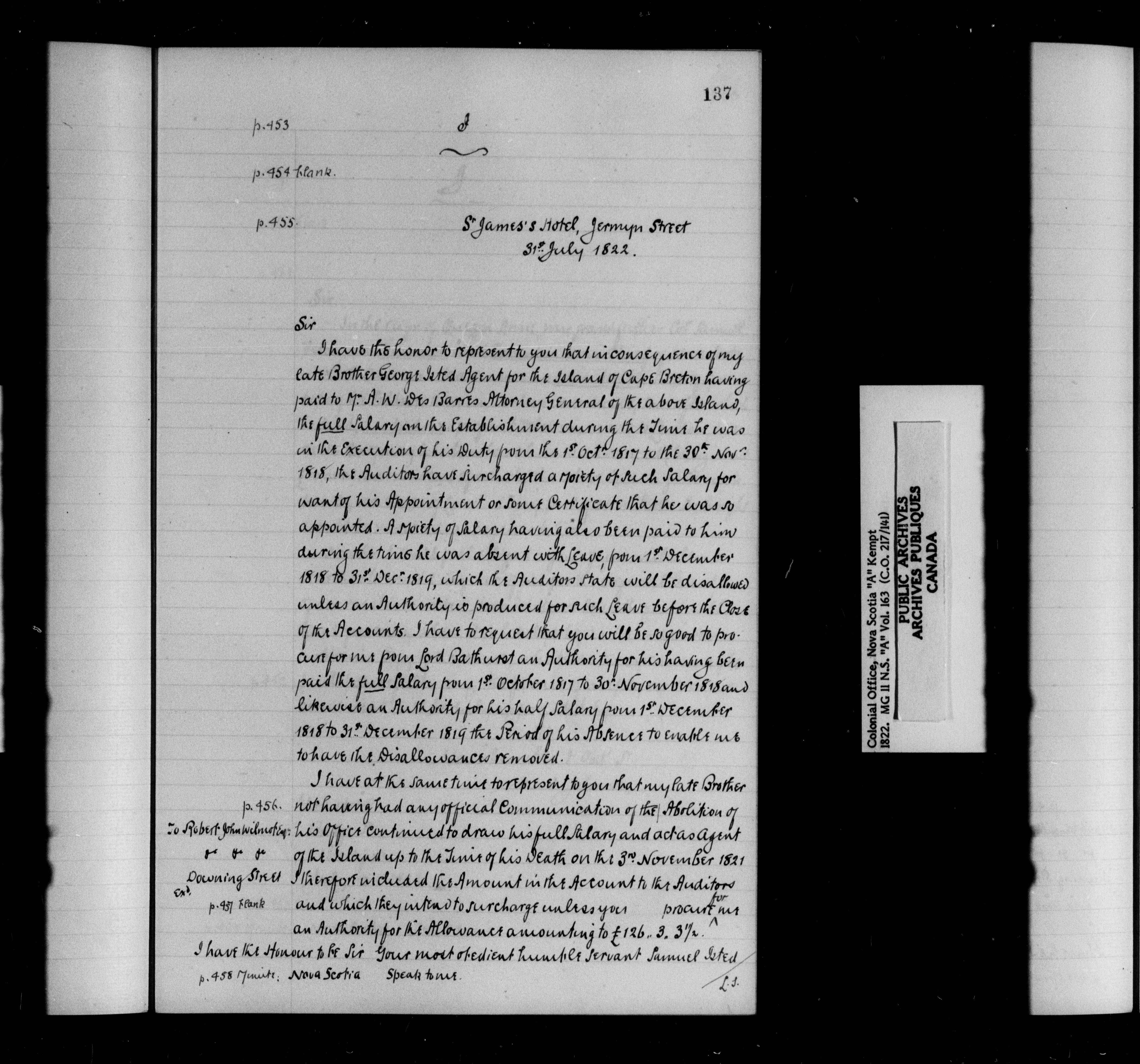 Nova Scotia and Cape Breton, Original Correspondence (CO 217) : C-9142