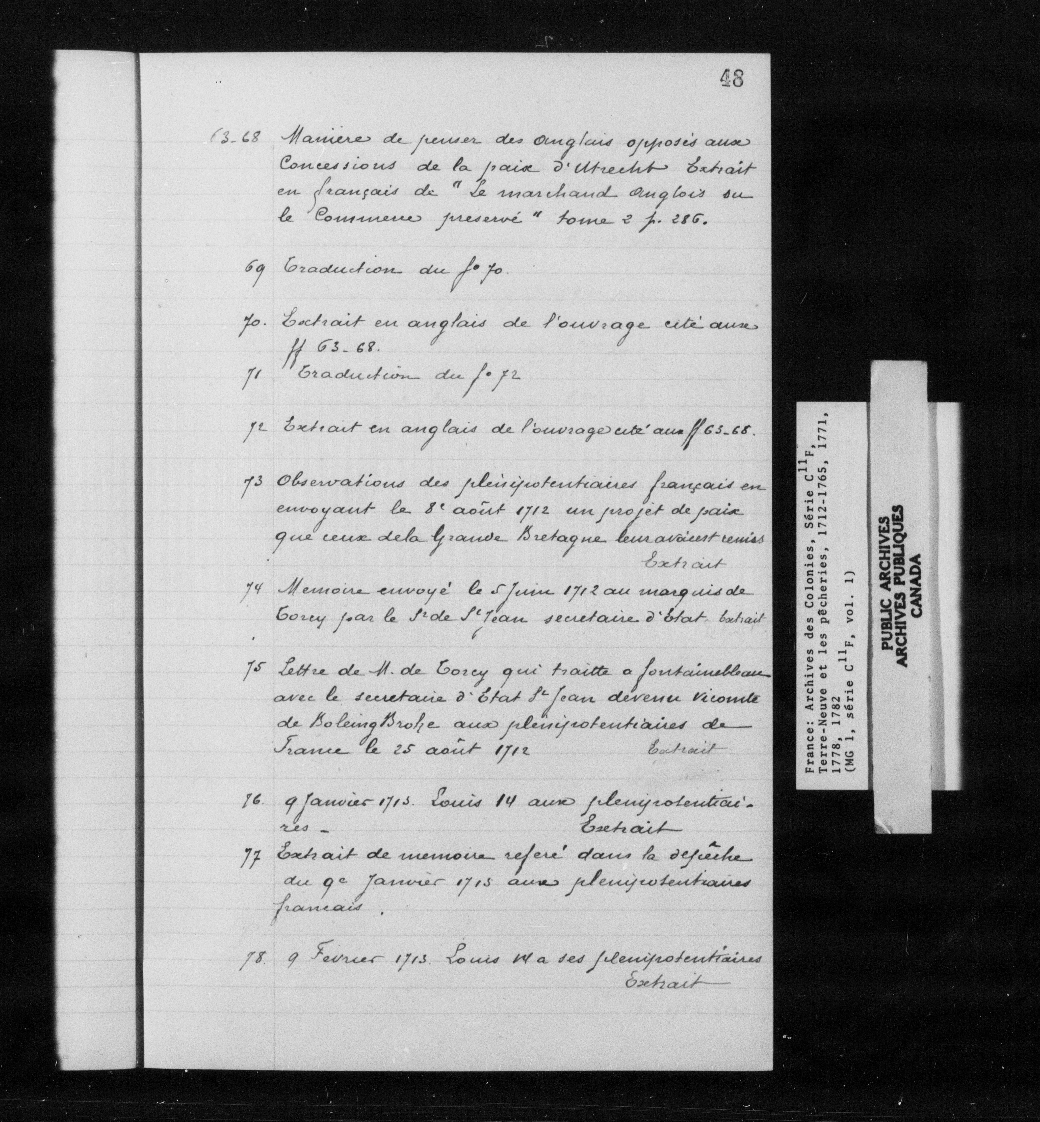 France. Fonds des Archives nationales: Série C11F. Correspondance générale; Terre-Neuve et les pêcheries : C-9144