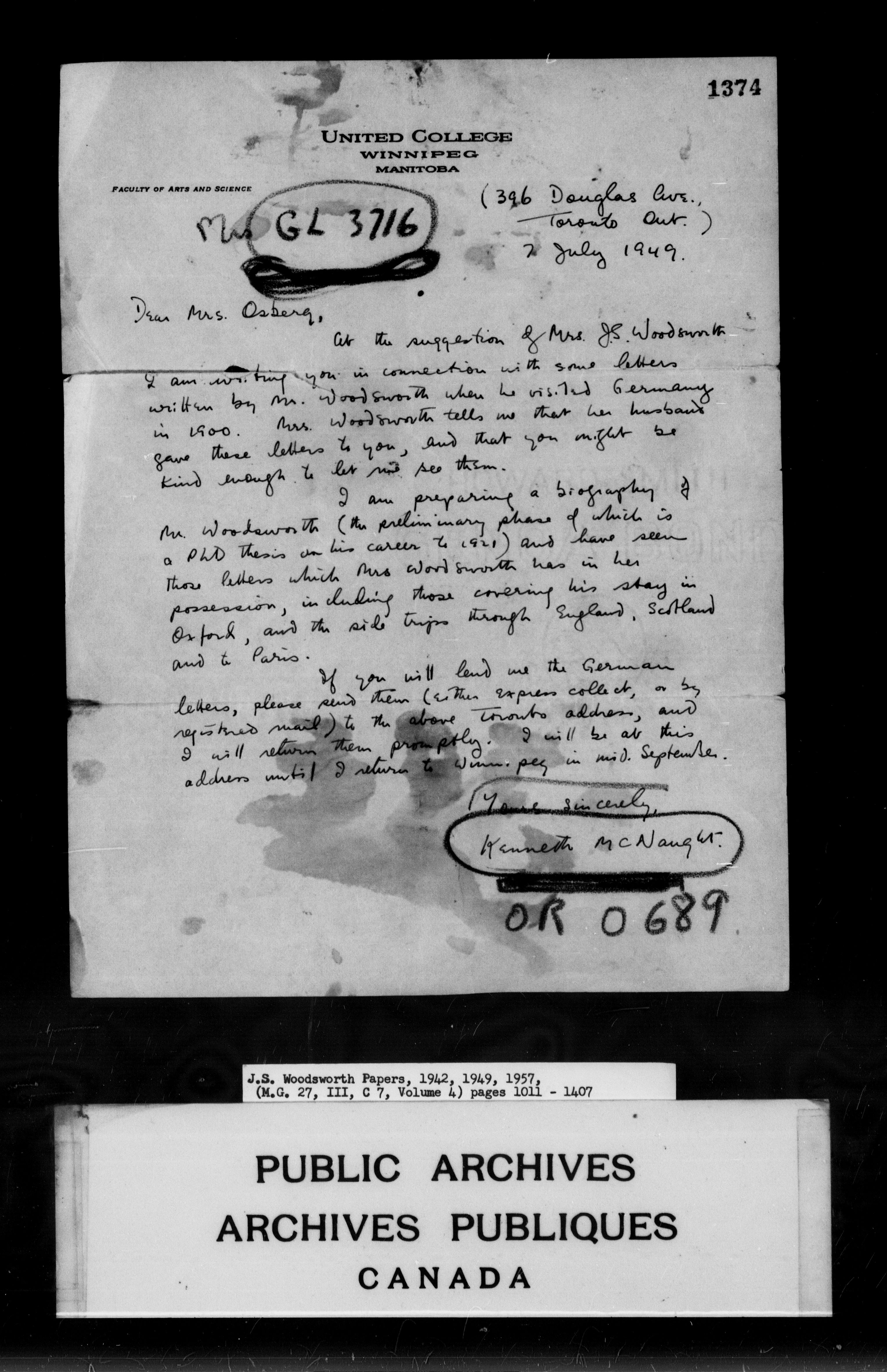 J.S. Woodsworth fonds - 9161