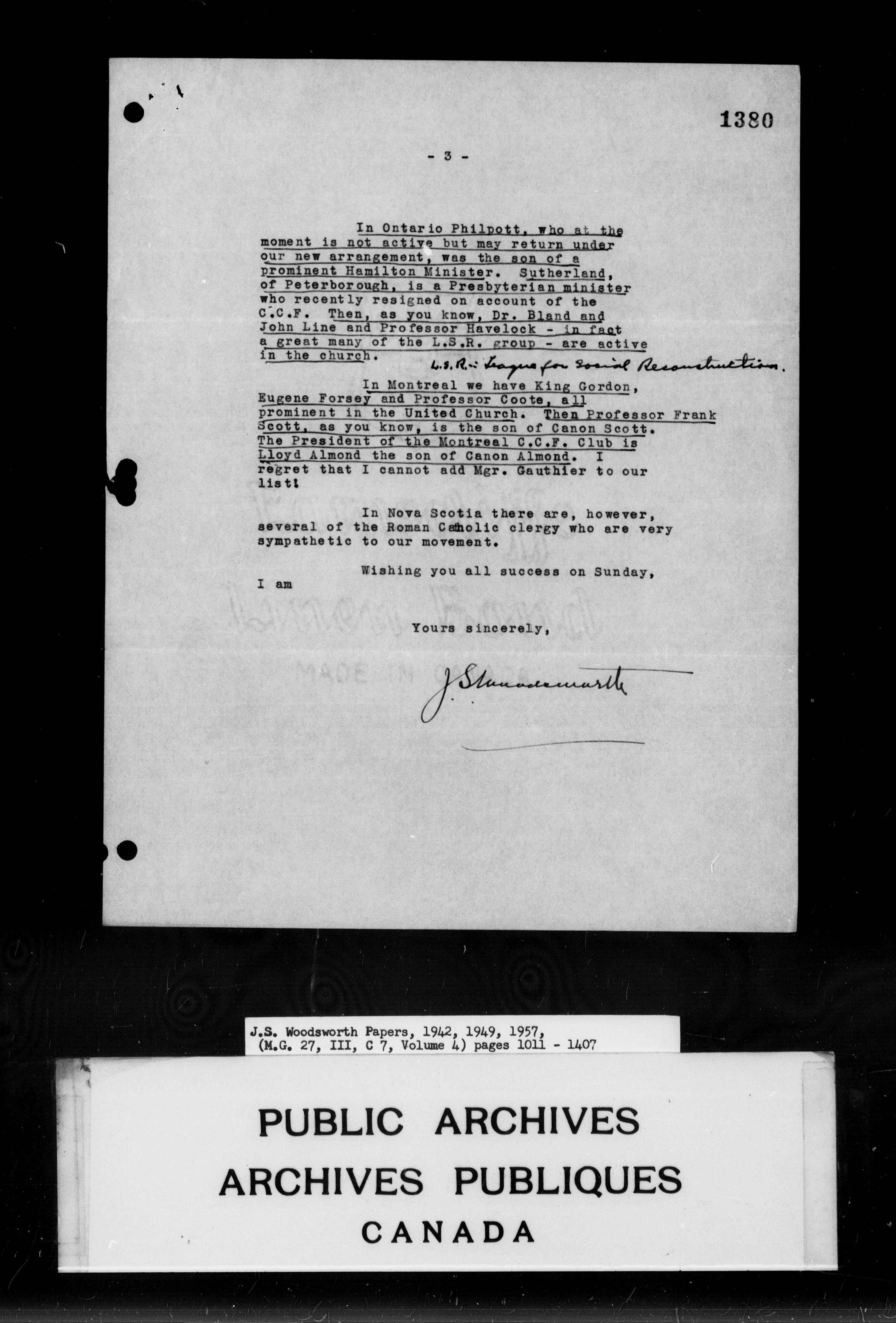 J.S. Woodsworth fonds - 9161