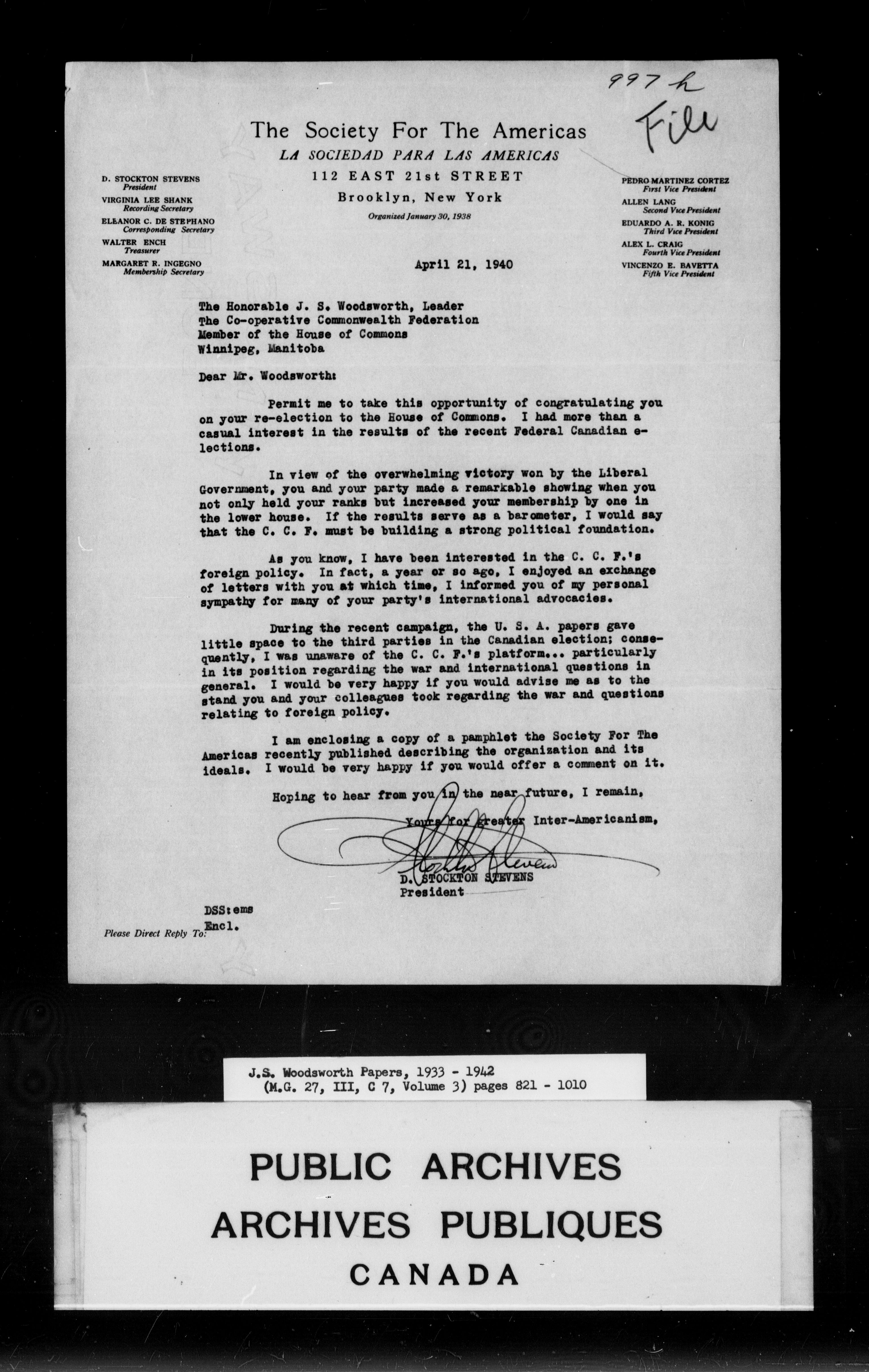 J.S. Woodsworth fonds - 9161