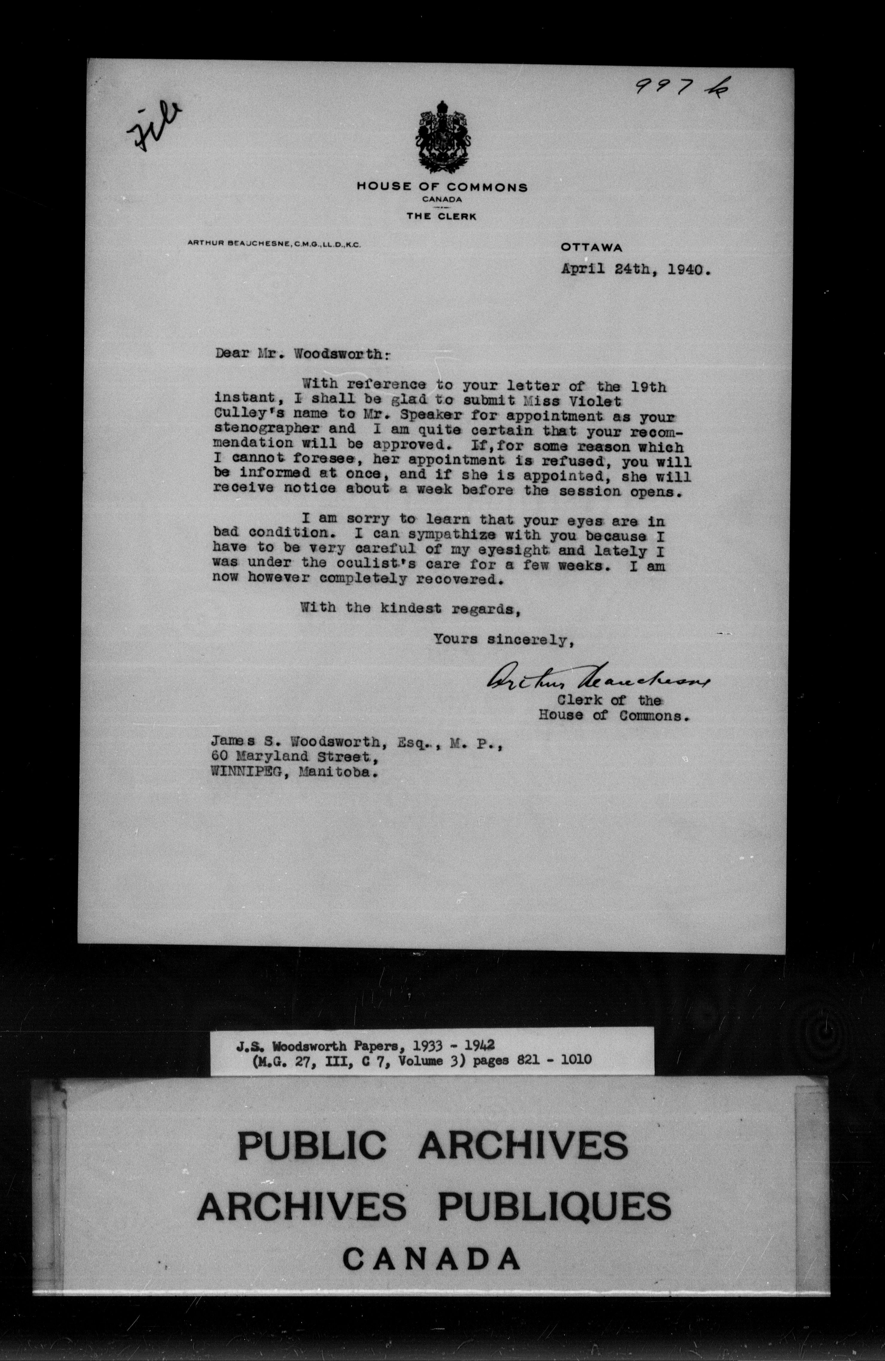 J.S. Woodsworth fonds - 9161