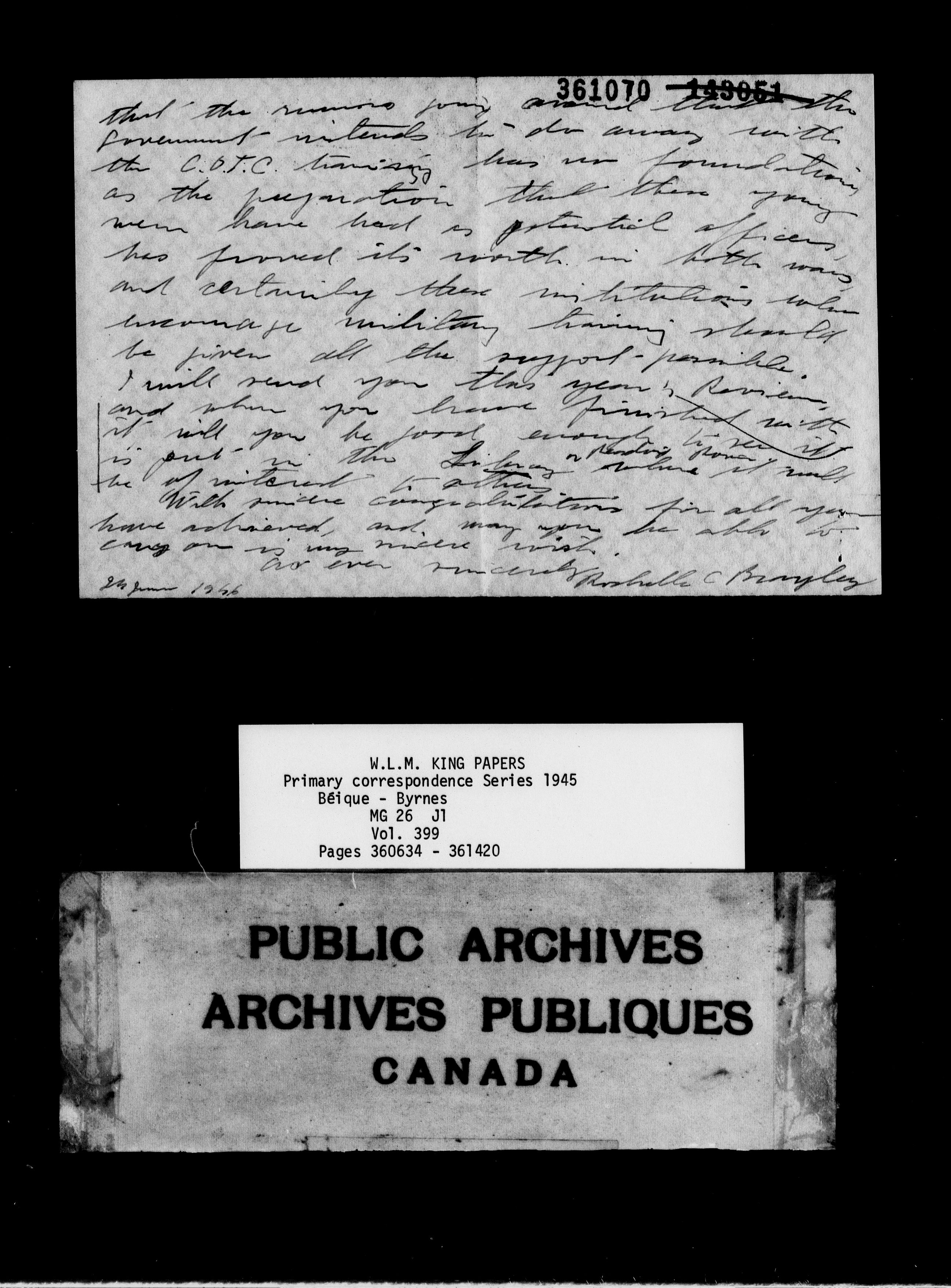 William Lyon Mackenzie King : Primary series correspondence (J1) - 9167