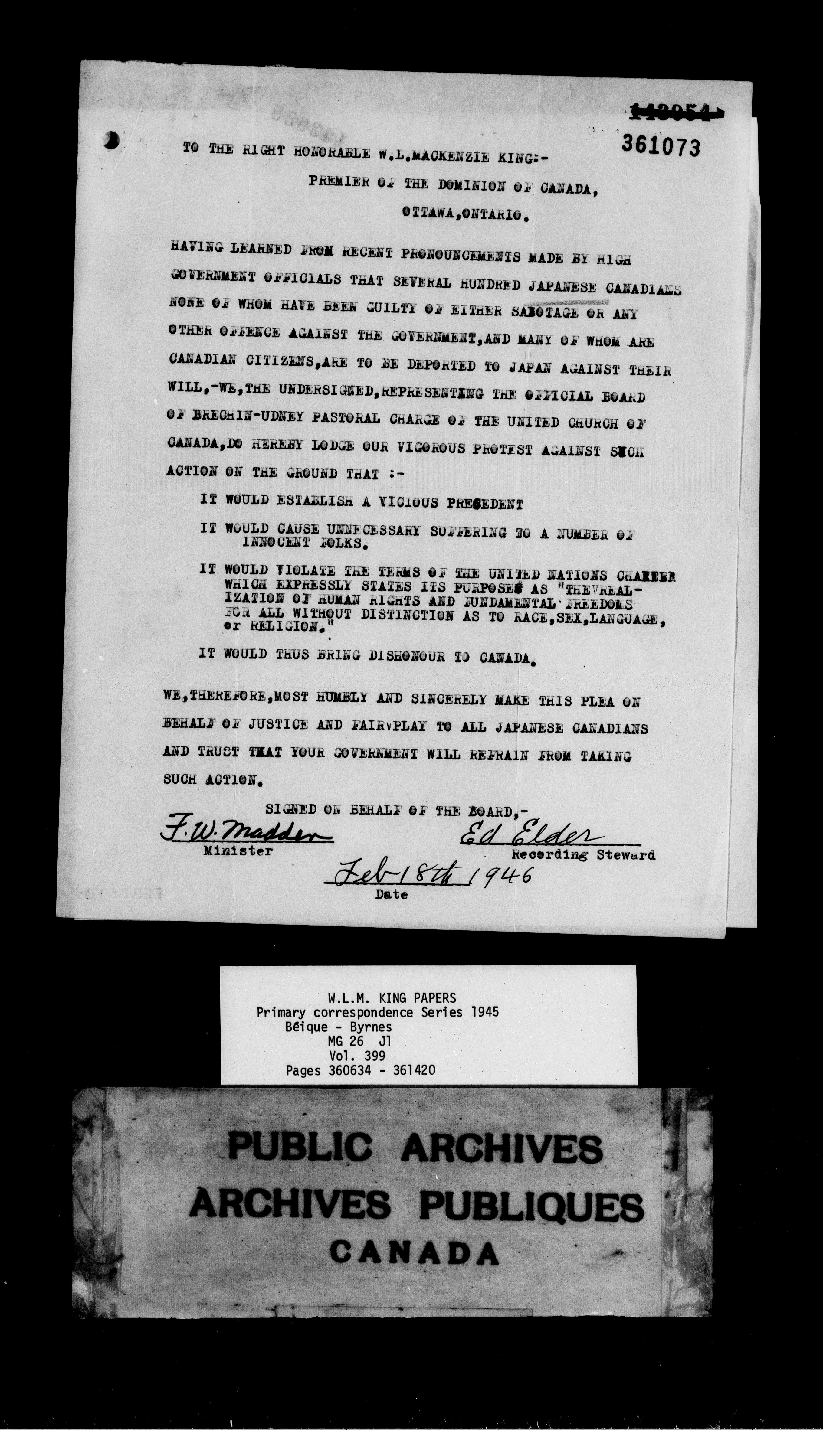 William Lyon Mackenzie King : Primary series correspondence (J1) - 9167