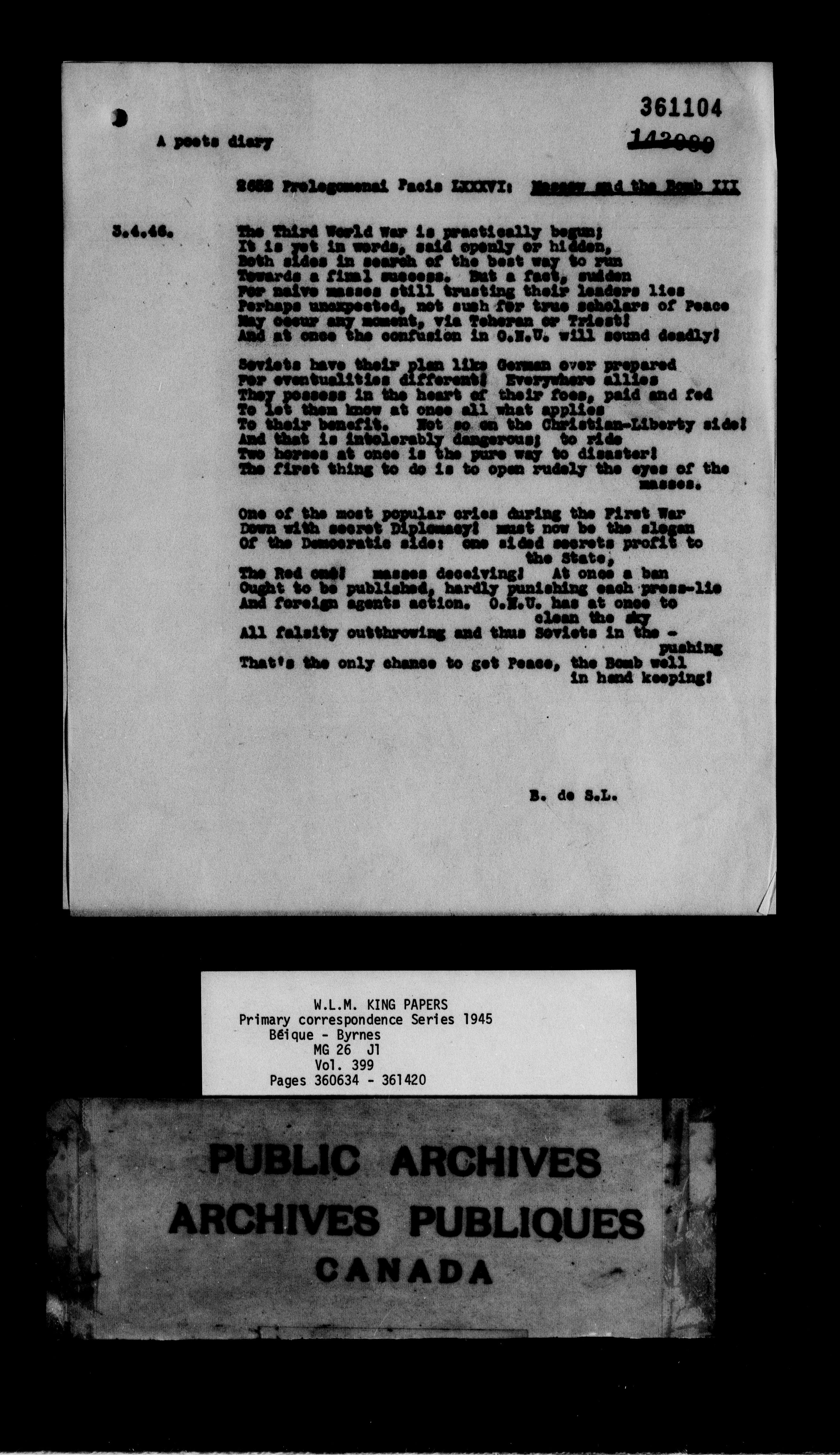William Lyon Mackenzie King : Primary series correspondence (J1) - 9167
